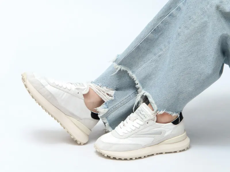 イタリア発のスニーカーブランド、D.A.T.E.(デイト)の「ATHLETA NYLON」。ナイロンとレザーを組み合わせた異素材デザインが特徴のモデルです。異なる素材の組み合わせがシンプルなカラーリングの中にほどよいアクセントを添え、足元に立体感のある表情をプラス。カジュアルなスタイルはもちろん、少しきれいめなコーディネートにも取り入れやすい一足です。インソールを備え、自然なスタイルアップと軽やかな履き心地を実現。使用されている素材はすべてイタリア製で、細部までこだわった仕上がりも魅力です。