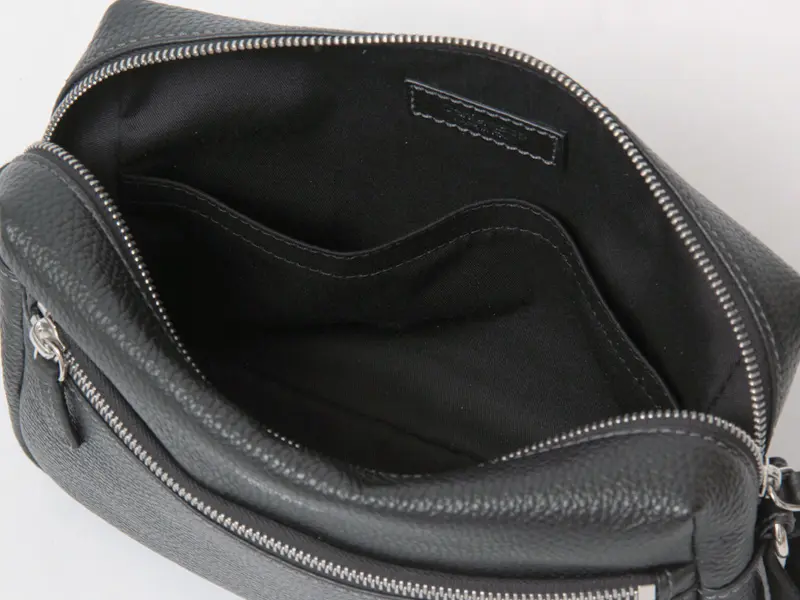 コンパクトな外観を裏切る、長財布や必需品がゆったり収まる絶妙なサイズ感。開閉部は安心感のあるファスナー仕様で、中身をしっかりと守ります。内側には幅広のオープンポケットを備えており、スマートフォンや鍵などの小物をスマートに整理できる実用的な設計です。
