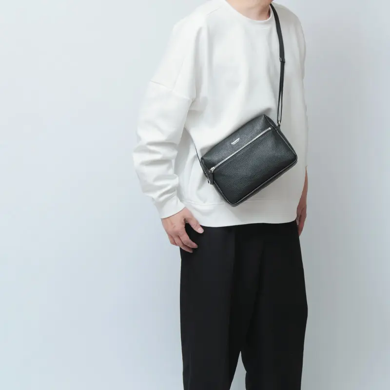 イタリアの熟練した職人が手掛けるDaniel&Bob(ダニエルアンドボブ)より、実用性と美しさを兼ね備えたスクエアショルダーバッグをご紹介。最大のポイントは、スマートな外観を損なわない絶妙なマチ設計。コンパクトに見えて、長財布などの必需品、手帳などもスムーズに収納可能です。素材には高級感溢れるシュリンクレザーを採用し、柔らかな質感と耐久性が両立しています。無駄を削ぎ落としたミニマルなデザインは、休日のカジュアルスタイルを上品に格上げする逸品です。