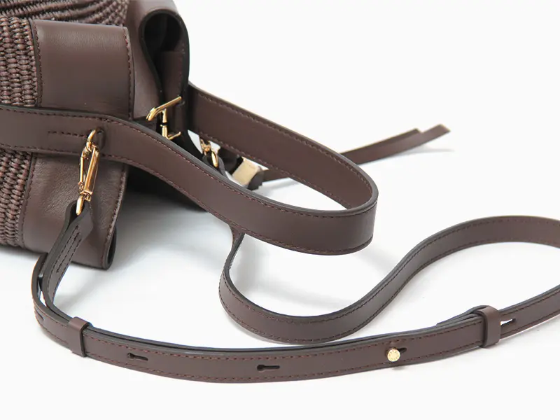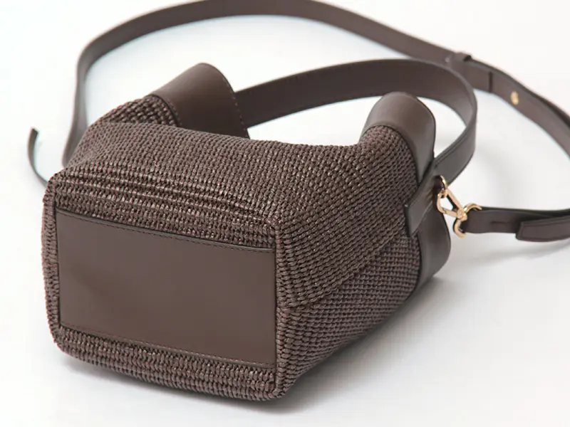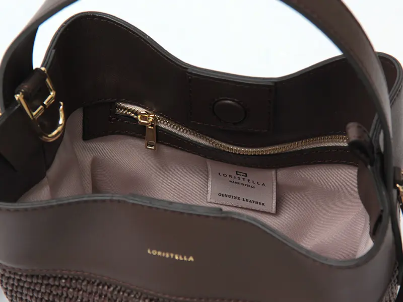 本体にはコットンとポリアミドを混紡した、高品質なイタリア製ラフィア調シートを採用。天然素材のようなナチュラルな風合いを持ちながら、引っ掛かりが少なく衣服を傷めにくいのが特徴です。天然ストローに比べて耐久性が高く、多少の水濡れにも強いため、天候を気にせずデイリーに愛用いただけます。