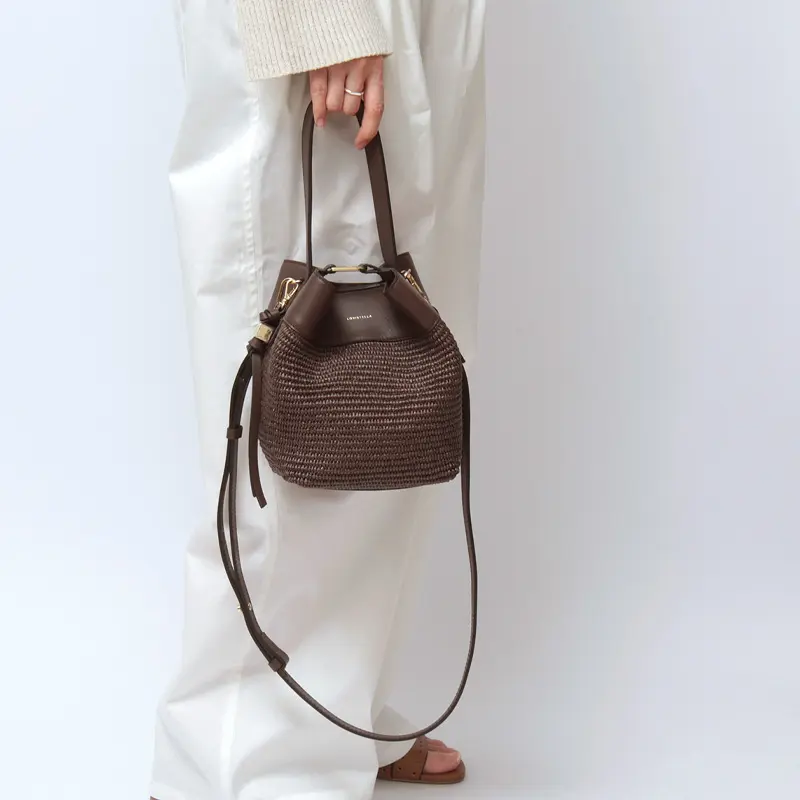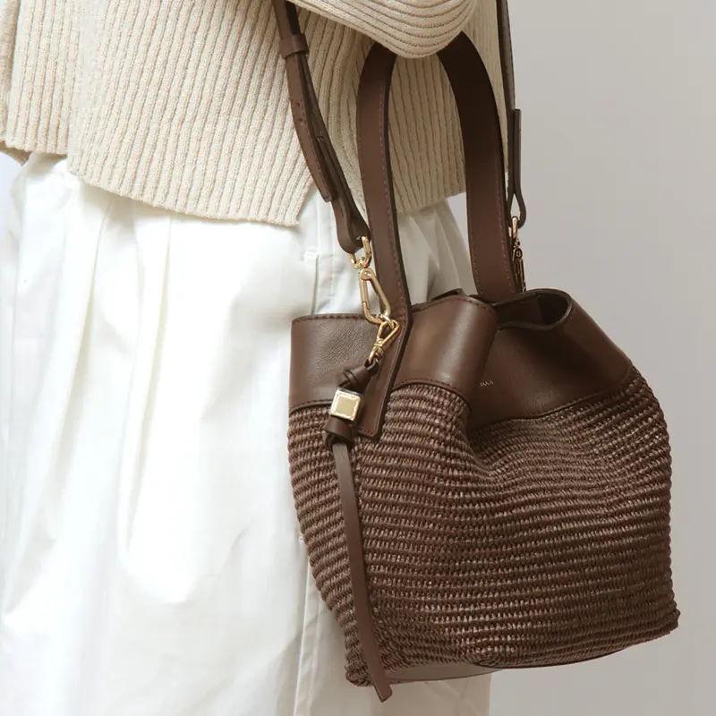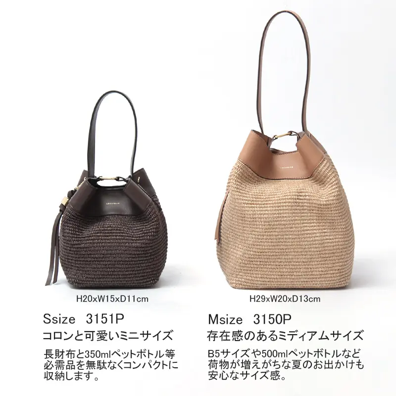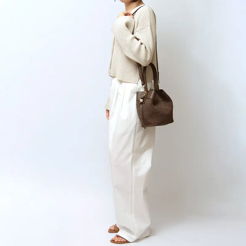 アクセサリー感覚で取り入れられるコンパクトなサイズ感。小柄な方でもバランスが取りやすく、斜めがけスタイルもスマートに決まります。「季節感は欲しいけれど、大きすぎるかごバッグは苦手」という方におすすめのボリュームです。