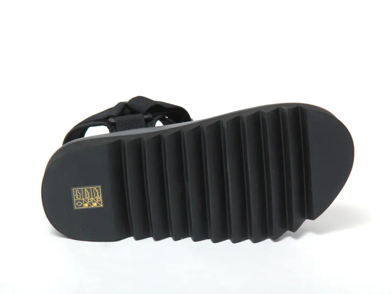 底面にはシャークソールデザインを採用し、滑りにくく安定感のある歩行をサポート。ギザギザの歯型がアクセントとなり、厚底サンダルに動きのある印象をプラスします。耐久性も兼ね備え、夏のお出かけやアウトドアシーンでも安心して履ける一足です。