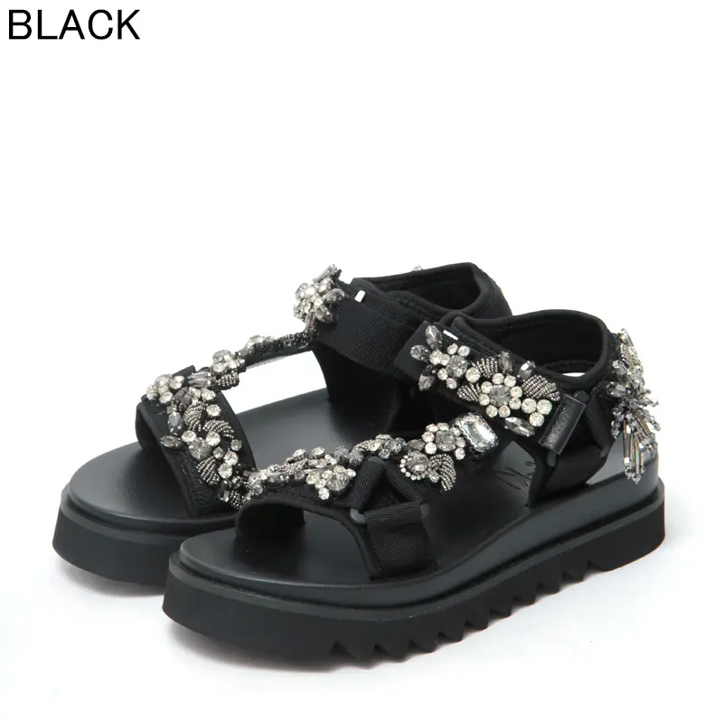 NAN-KU Couture ナンク クチュール ビジュー付き 厚底 サンダル BLACK