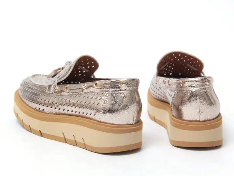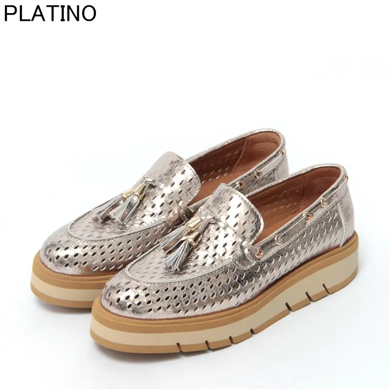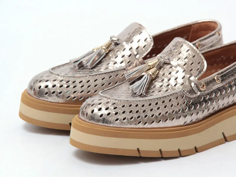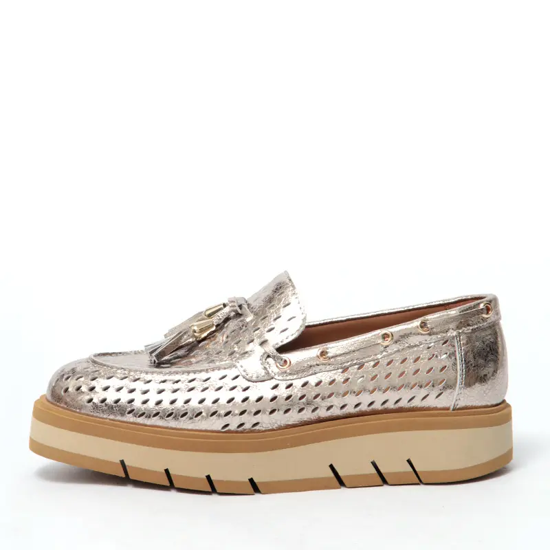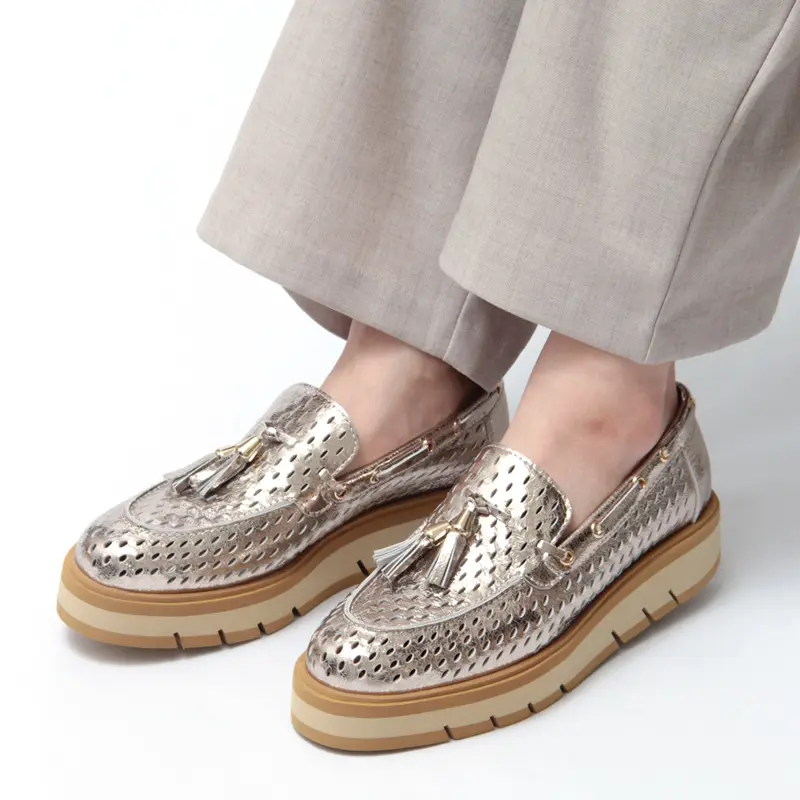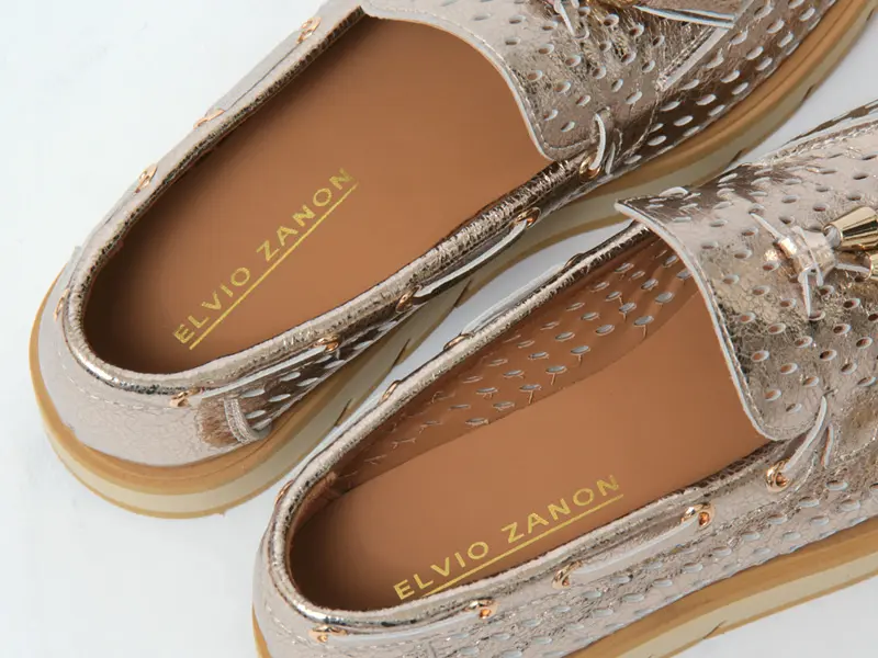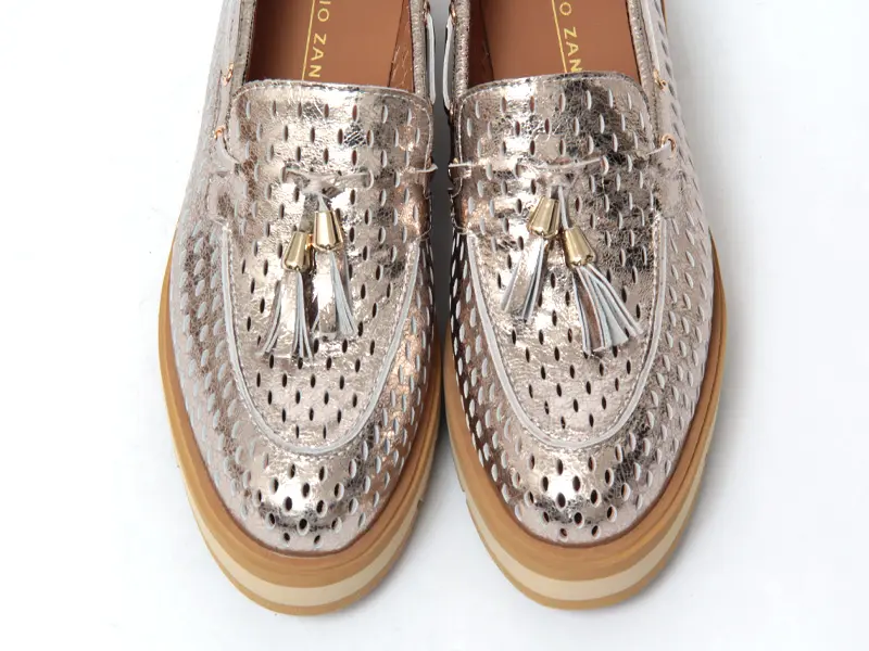 ELVIO ZANON エルビオザノン パンチングメタリックレザー 厚底 タッセルローファー PLATINO
