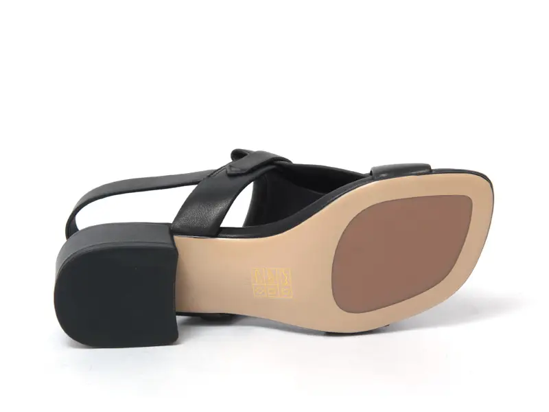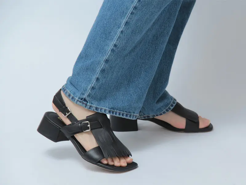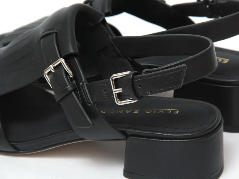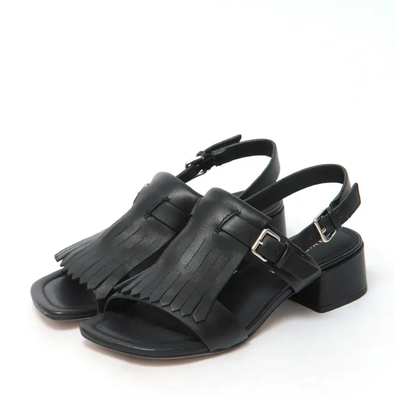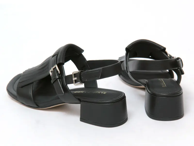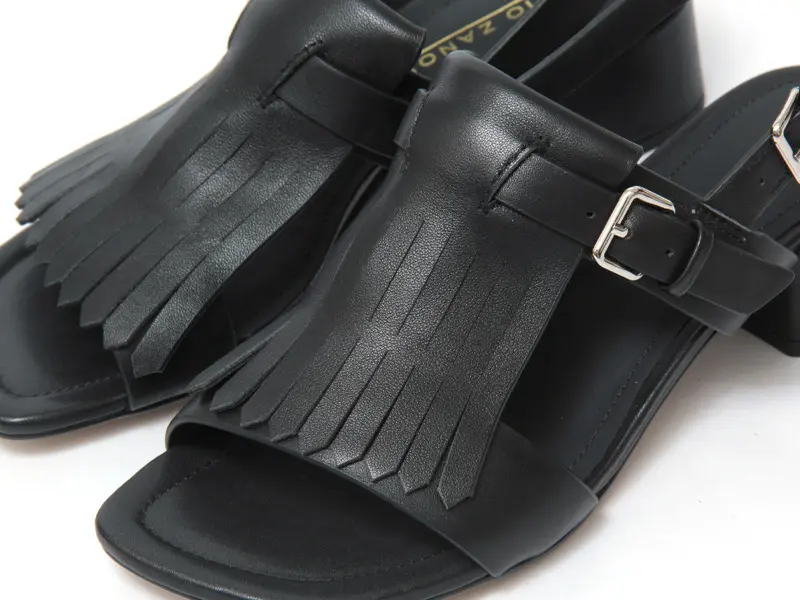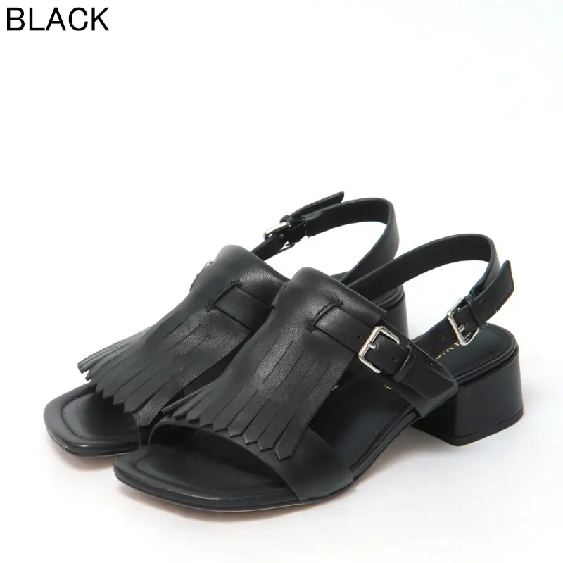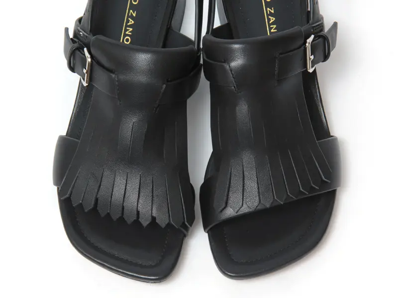 ELVIO ZANON エルビオザノン フリンジ バックストラップ ヒールサンダル BLACK