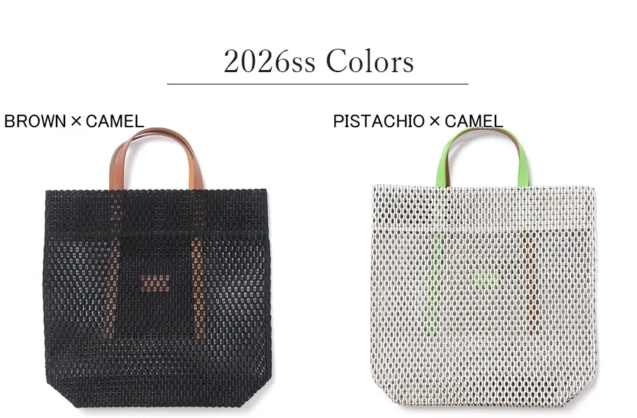毎日のスタイルに取り入れやすいメッシュトート。しっかりとしたコットンメッシュ素材を採用し、軽さと安心感のある使い心地を両立しています。本体重量は約220gと非常に軽量ながら、収納力も十分。デイリーバッグに求められる条件をバランスよく備えた、頼れるアイテムです。