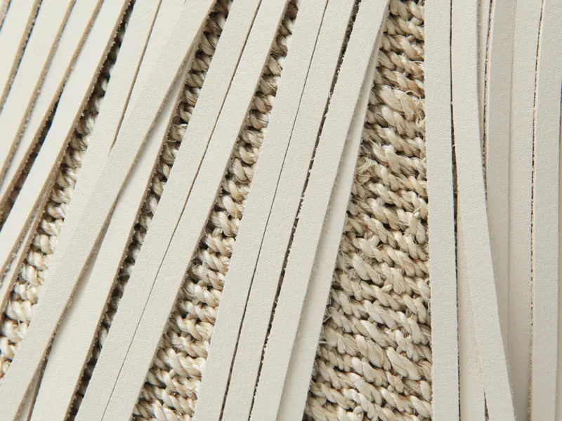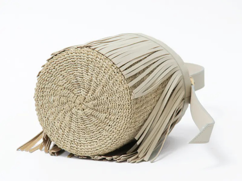 強さとしなやかさを兼ね備えた天然素材アバカに、上質な牛革を組み合わせた上品な仕上がり。軽やかな編み地にレザーフリンジのアクセントが映え、ナチュラルでありながら洗練された印象を与えます。ラフになりすぎないバランスで、きれいめなスタイルにも心地よく馴染むのが魅力。本革とのコンビながら軽量で扱いやすく、美しいフォルムをキープしてくれます。