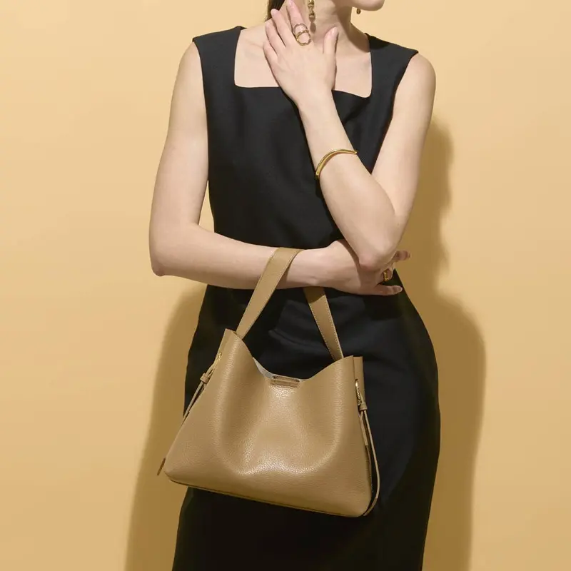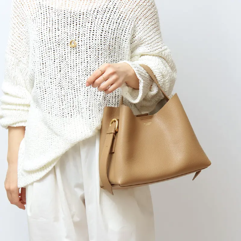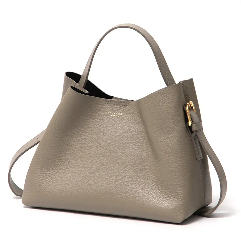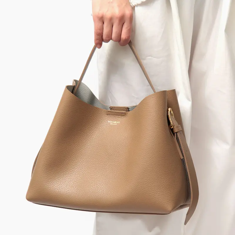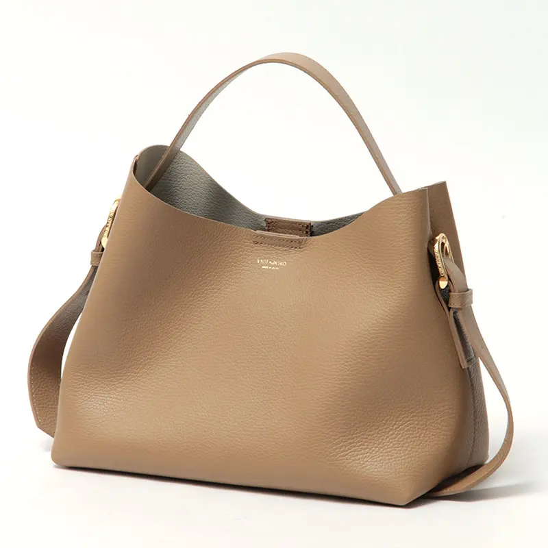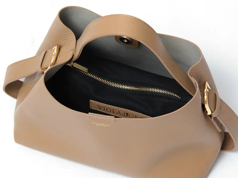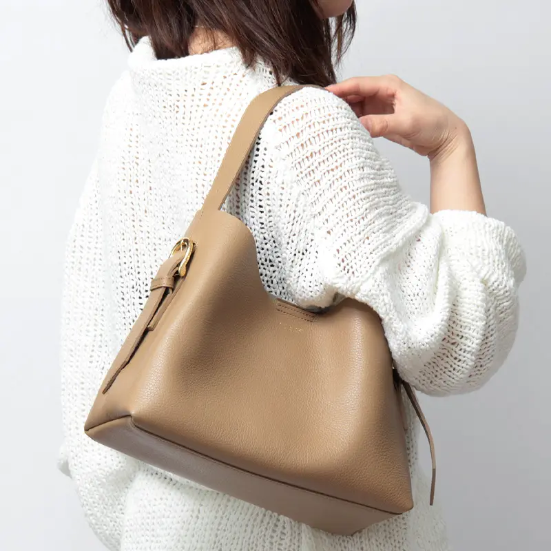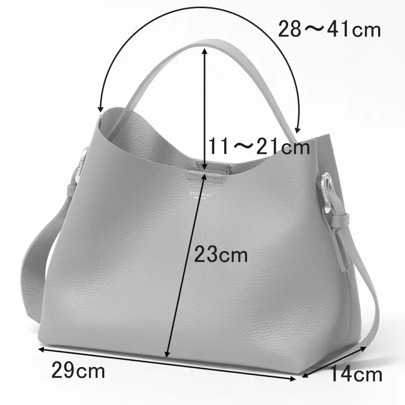 柔らかな一枚革の質感を活かしたVIOLAd'ORO(ヴィオラドーロ)で人気の「TRERO トレロ」シリーズ。ワンショルダーバッグ V-1629は、ハンドルの長さが調節できるため、手提げから肩掛けまで、その日のスタイルに合わせて自由にアレンジが可能です。500mlペットボトルや長財布が収まる安心のサイズ感で、取り外し可能なポーチも付属。通勤からデイリーユースまで、日常を上品に彩ります。