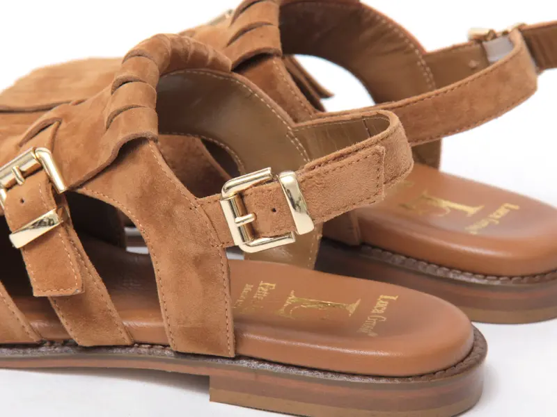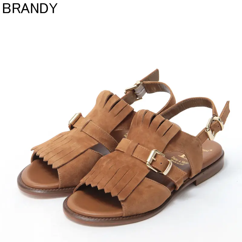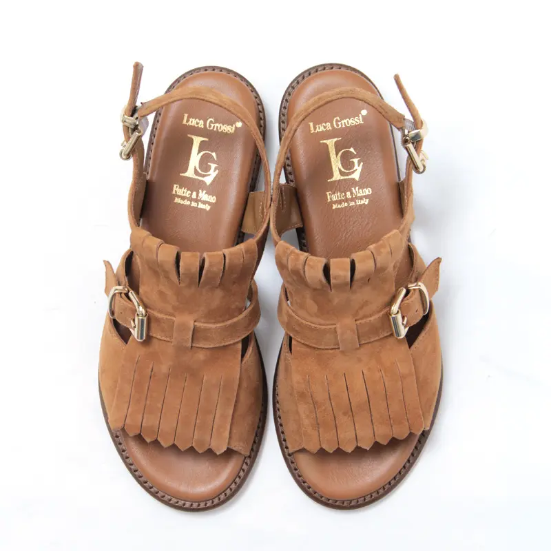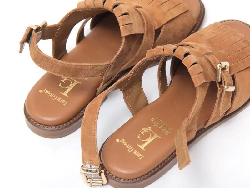 LUCA GROSSI ルカ グロッシ スエード フリンジ バックストラップ サンダル BRANDY