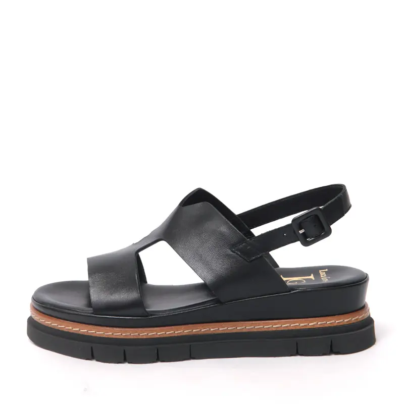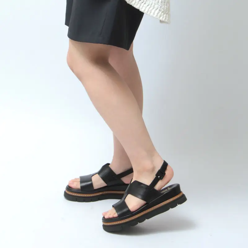 イタリア発のシューズブランド「Luca Grossi(ルカグロッシ)」の厚底サンダル。アッパーに施されたカッティングが足元をすっきりと美しく見せ、抜け感のある軽やかな印象に仕上げています。ブラックレザーの引き締まった表情に、ステッチを効かせたソールがさりげないアクセントに。約4.5cmのソールで安定感があり、デイリーにも取り入れやすい一足です。