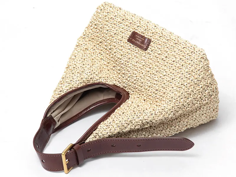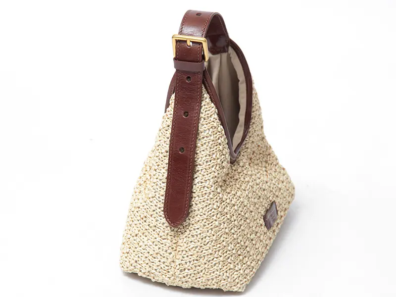 ラフィアマクラメと本革が織りなす