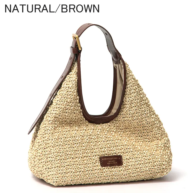CHRISTIAN VILLA クリスチャンヴィラ ALMA  ラフィア(マクラメ) 本革 かごバッグ NATURAL/BROWN