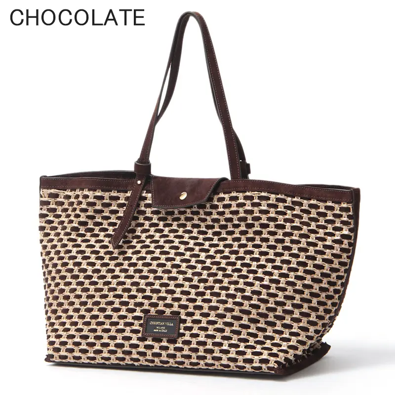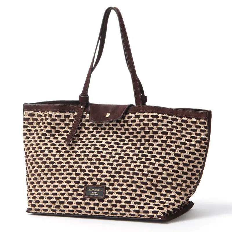 CHRISTIAN VILLA クリスチャンヴィラ ラフィア×スエード イントレチャート かごバッグ CHOCOLATE