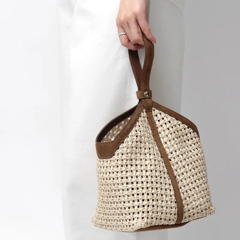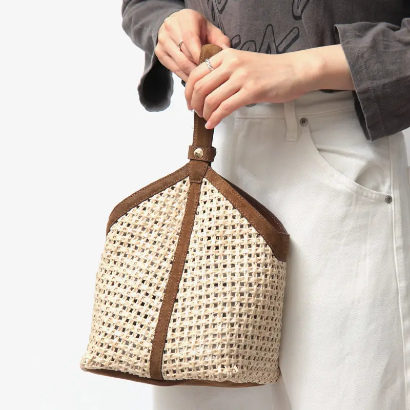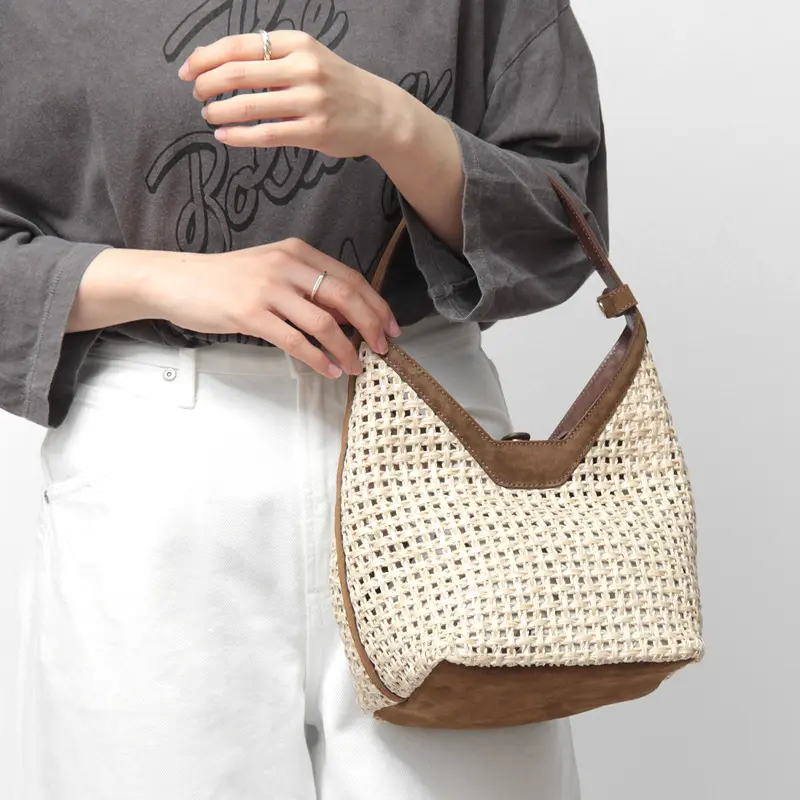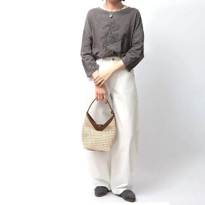 涼しげな表情のかごバッグは、春夏のスタイリングの主役に。カジュアルなデニムスタイルにはこなれ感を、リネンワンピースなどのリゾートスタイルには都会的な品格を添えてくれます。上質なレザーパーツが全体を程よく引き締めるため、街歩きやランチシーン、大人のカジュアルアップにも最適です。