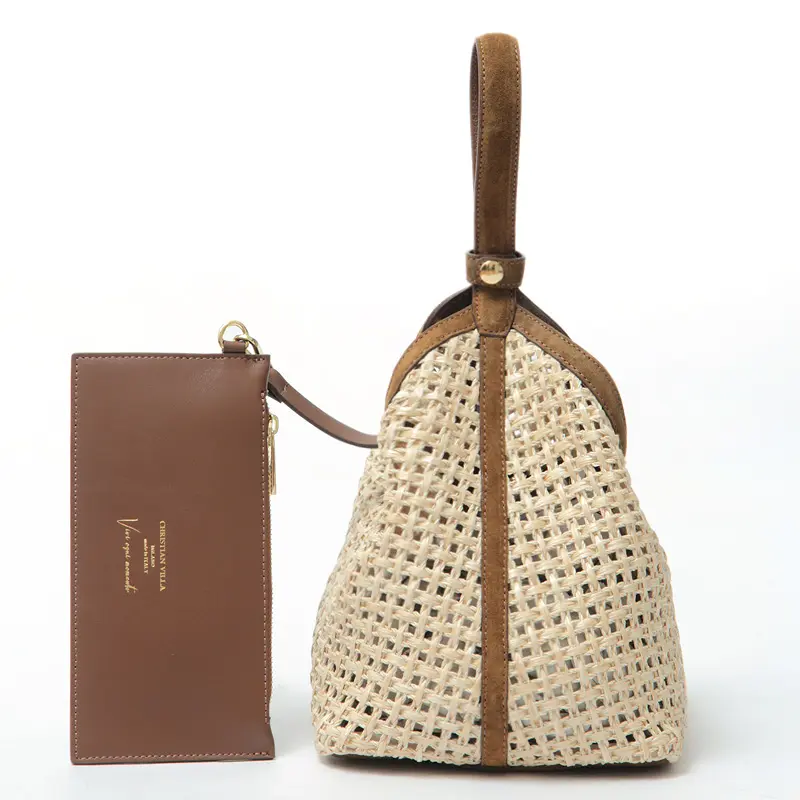 天然素材ラフィアを贅沢に使用した「CHRISTIAN VILLA(クリスチャンヴィラ)」のバスケットバッグ「SILVYA(シルビア)」6468。繊細なマクラメ編みに、しっとりとしたスエードレザーのパイピングが高級感をプラス。ナチュラルな風合いをイタリアらしいモダンなデザインに昇華させた、大人のための逸品です。長財布やポーチなど、日常の必需品を軽やかに持ち運べます。