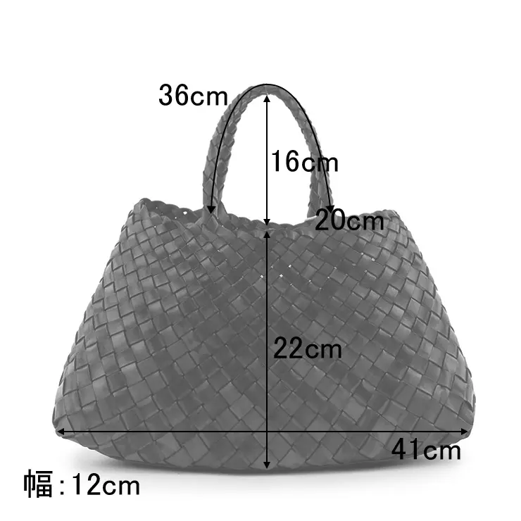 長財布やポーチなどの必需品がきちんと収まり、普段使いはもちろんショッピングや旅行にも最適なサイズ。開口部が広く開いているため、荷物の出し入れもスムーズです。裏地のない仕様なので、お気に入りの巾着を合わせてアレンジも楽しめます。