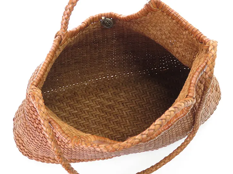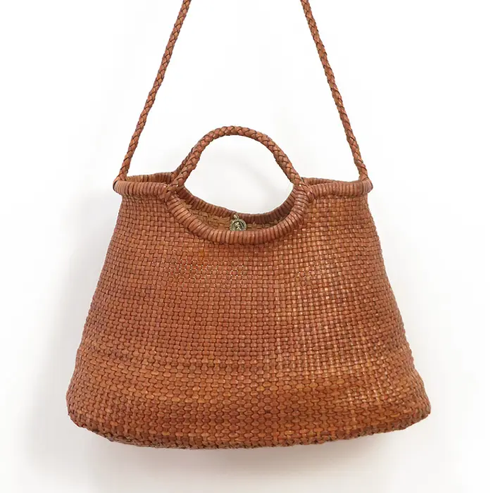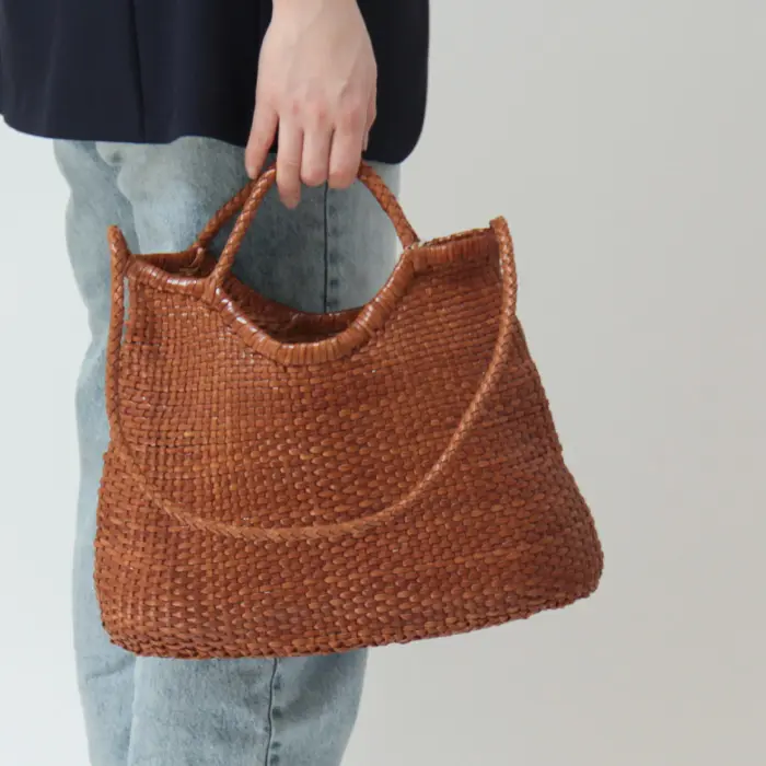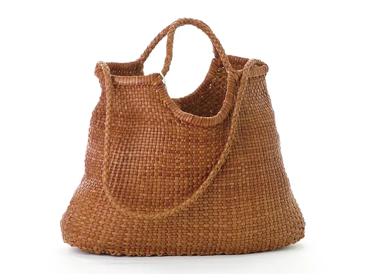 味わい豊かなレザーが魅力を引き立てるdragon(ドラゴン)のレザーメッシュバッグ「MADAME MYRIAM」8920。職人の手仕事による編み目の美しさが際立つ「かごバッグ」の軽やかさと、使い込むほどに色艶を増す「本革バッグ」の贅沢な質感を両立させました。 メッシュレザーならではの柔らかな表情が、いつものコーディネートに大人の洒落感をプラスしてくれます。