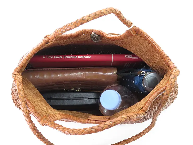 広めのマチ設計により、長財布やポーチ、手帳といった毎日の必需品はもちろん、折りたたみ傘や500mlのペットボトルもしっかり収納。 裏地を省いた贅沢な一枚革の作りで、オールレザーながら約430gという驚きの軽さを実現しました。 荷物が多い日も負担が少なく、軽快に持ち歩けるのが魅力です。