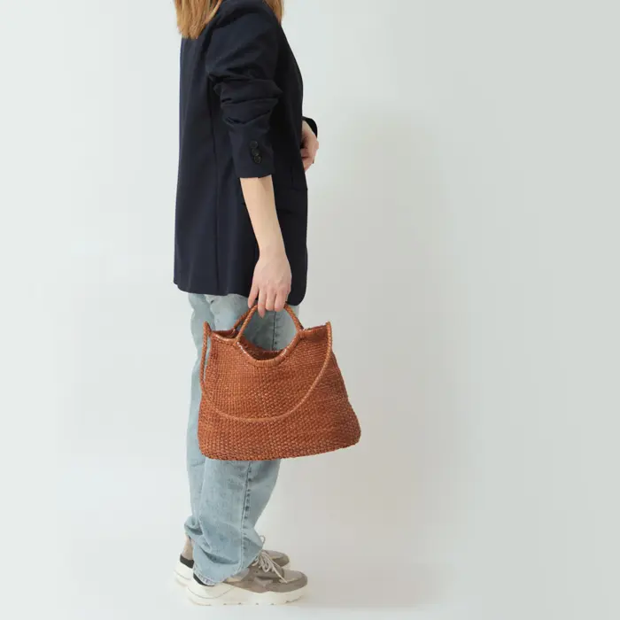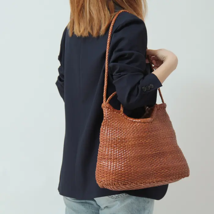 ハンドバッグとしても、ショルダーバッグとしても使える実用的な2way仕様。華奢に仕上げたハンドルとストラップが、ナチュラルな素材感の中に上品な女性らしさを引き立てます。ショルダーは肩掛けしやすい絶妙な長さで、通勤やショッピング、旅行など、アクティブに動きたい日にも最適。その日のスタイリングやシーンに合わせて、自由な持ち方をお楽しみいただけます。