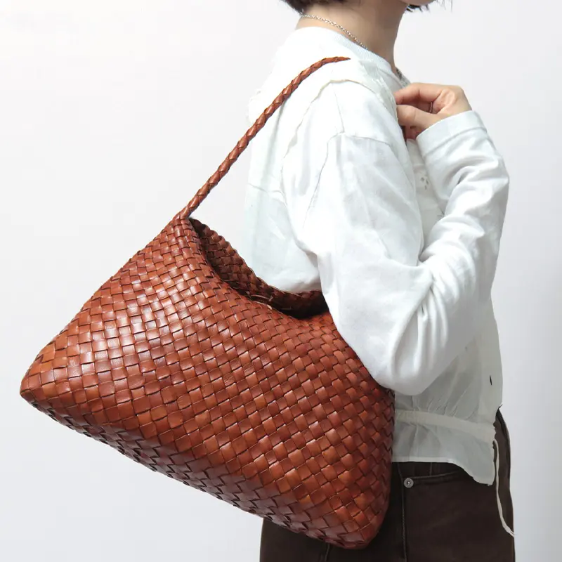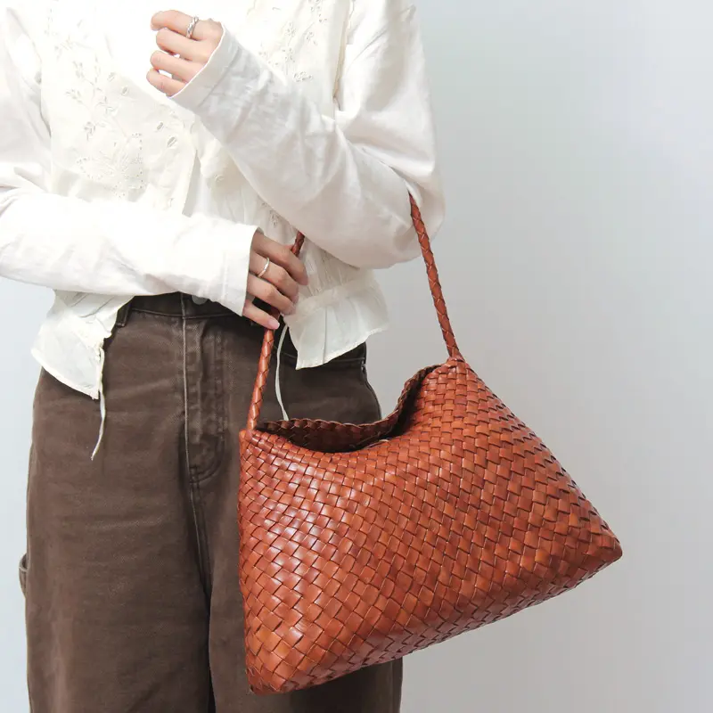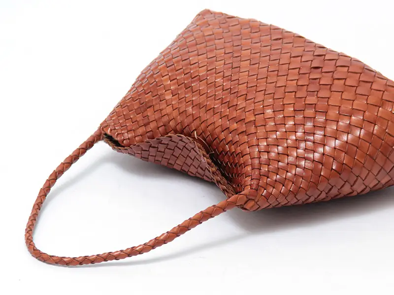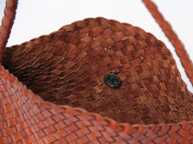 牛革製の手織りバスケット