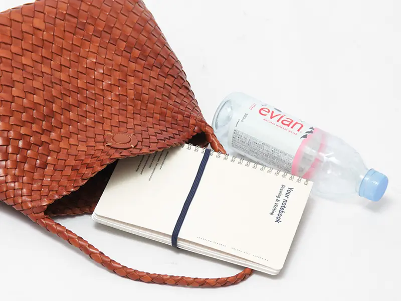 開閉はマグネット仕様で、片手で簡単に開閉が可能。中身が丸見えになるのを防ぎ、移動中や人混みでも安心してお使いいただけます。柔らかなレザーなので開口部が大きく開き、荷物の出し入れもスムーズ。A5サイズのノートや500mlのペットボトルなどの必需品+αがゆったりと収まるサイズ感です。