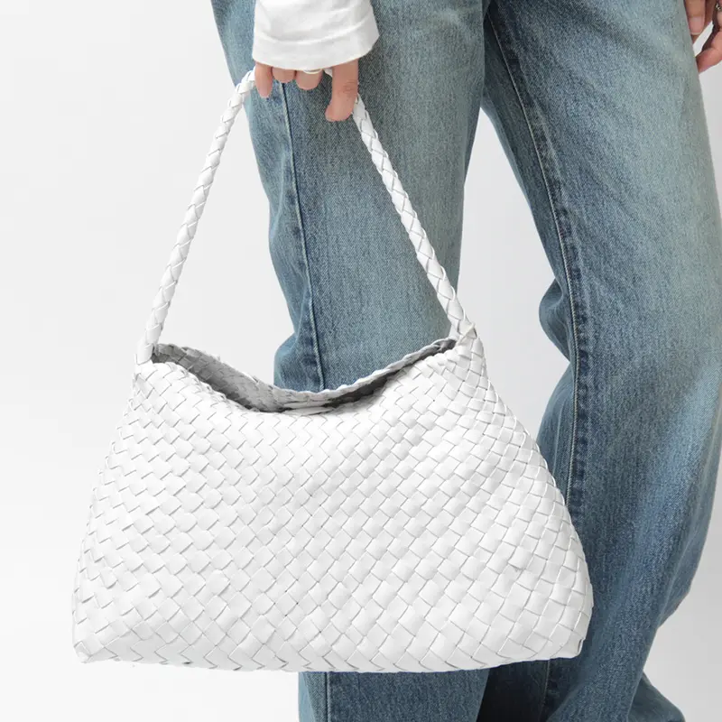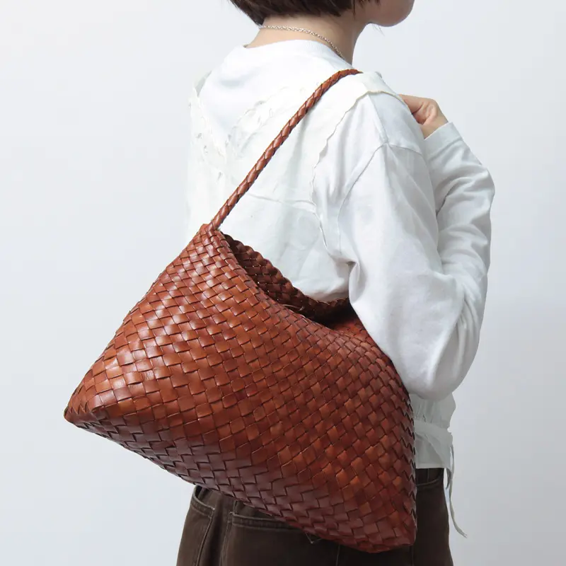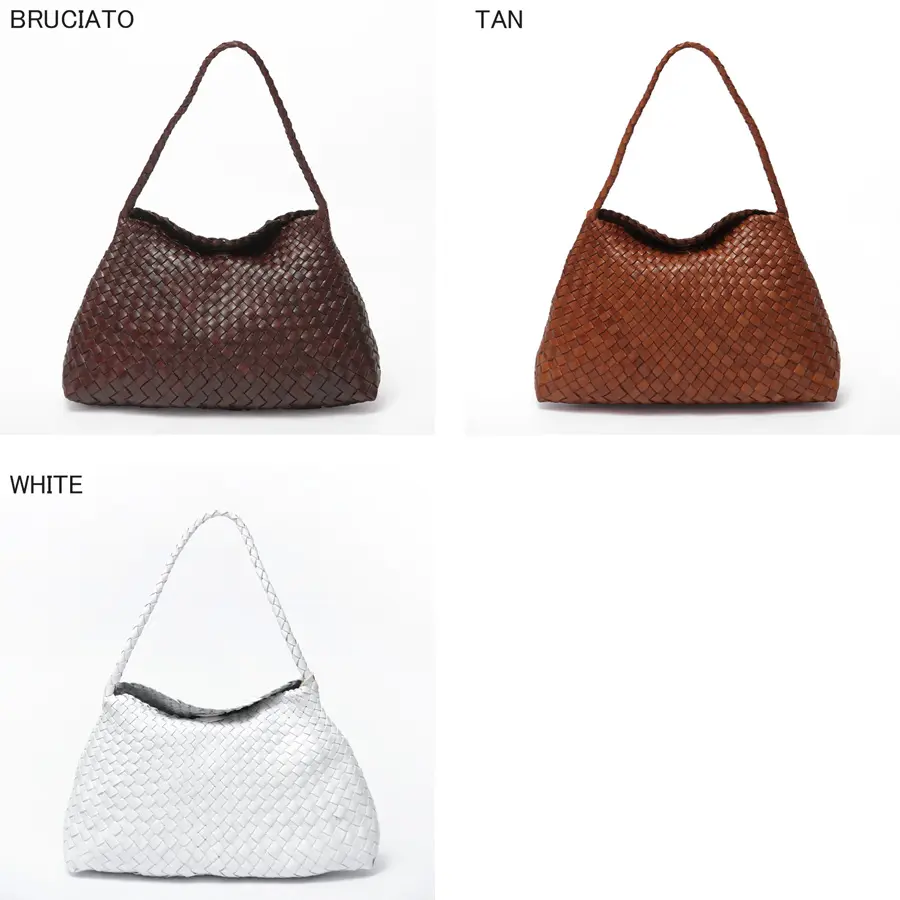 Dragon Diffusion(ドラゴンディフュージョン)の肩にフィットする細身の持ち手が付いたハンドバッグSANTA MARIA(サンタマリア)8700。レザーを編み上げたメッシュバッグは、軽やかで柔らかな肌触りが魅力。使い込むほどに艶が増し、自分だけの風合いに育つのが魅力。洗練された大人の佇まいで、日常の装いを品よく格上げします。