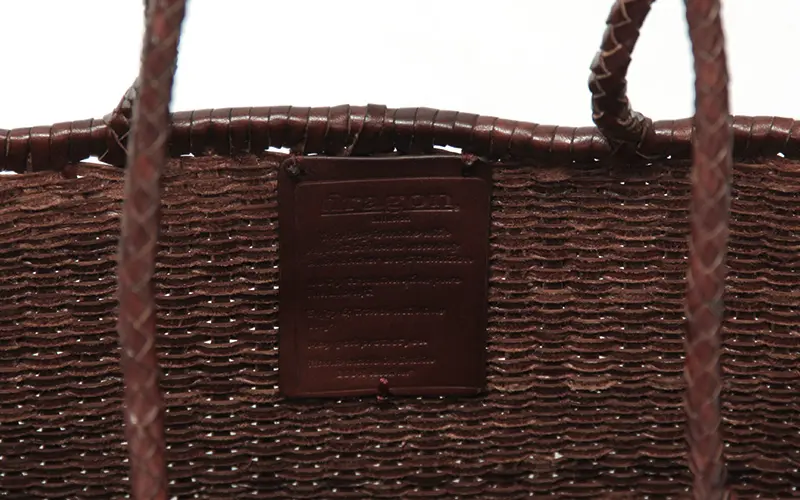 Dragon Diffusion(ドラゴンディフュージョン)の手持ち用にデザインされたバスケットB WVAVE BASKET SMALL(Bウィーブ スモール)8804。レザーを編み上げたメッシュバッグは、軽やかで柔らかな肌触りが魅力。使い込むほどに艶が増し、自分だけの風合いに育つのが魅力。洗練された大人の佇まいで、日常の装いを品よく格上げします。