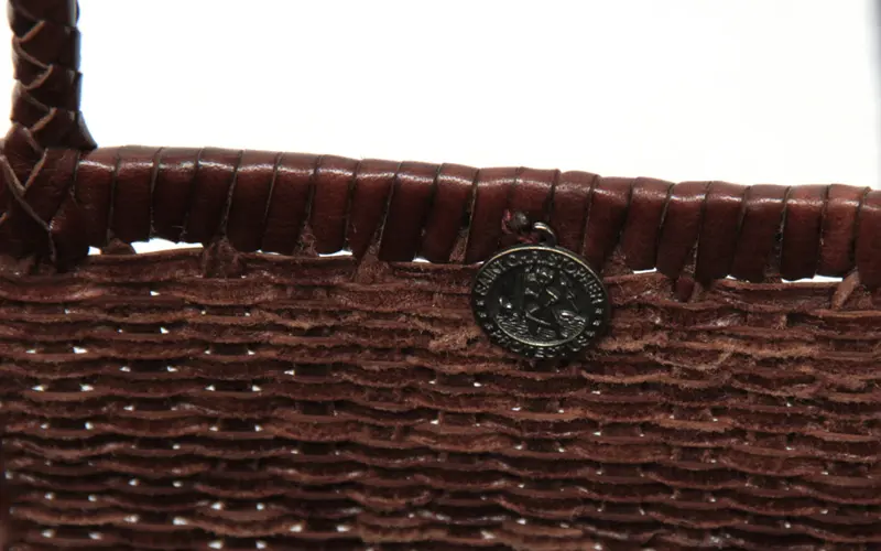 内側には、旅や海の守り神として愛される「セントクリストファー」のメダルチャームが施されています。裏面にブランドロゴが刻印されたこのチャームは、熟練職人の手による「正規品」である証。さらにブランドレザータグも丁寧に縫い付けられ、細部までこだわりが詰まっています。