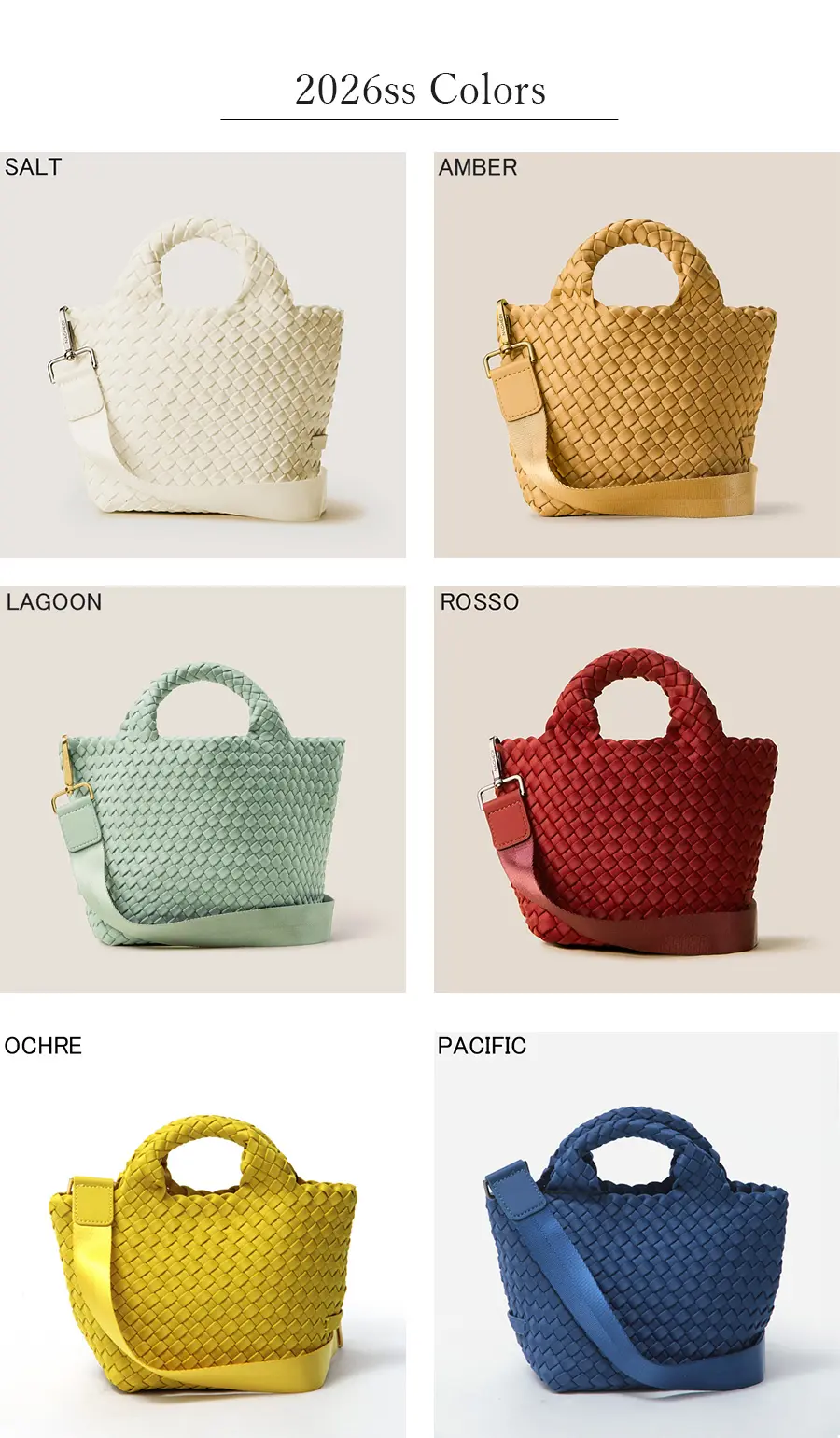 軽くて丈夫な弾力のある高密度フォーム素材を使用し、女性のライフスタイルに寄り添ったバッグを展開するNY発のバッグブランド"Naghedi/ナゲティ"。ダイビングスーツ等にも使われる機能性素材を丁寧に編み込んだメッシュ仕様のトートバッグ。取り外し可能なショルダーベルトを備えた2WAY仕様。長財布や必要最低限の荷物が収まりポケット感覚でお持ちいただけます。シーンやコーデを選ばないテイストは、幅広い年代にオススメです。