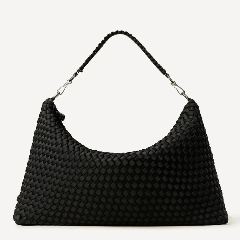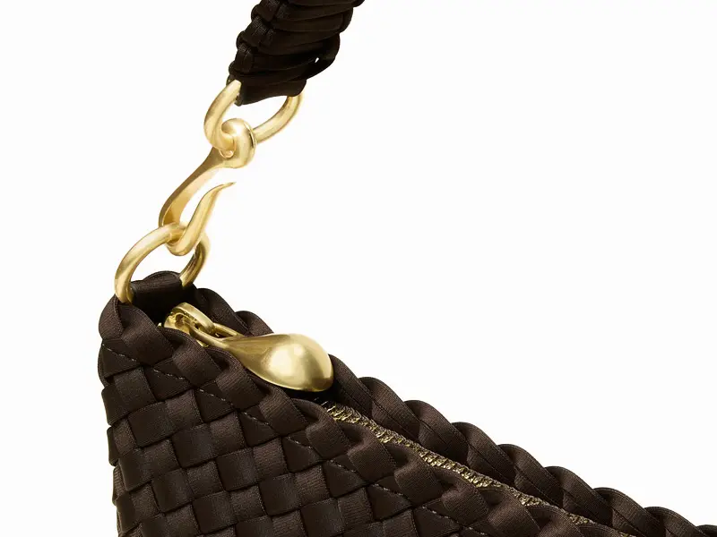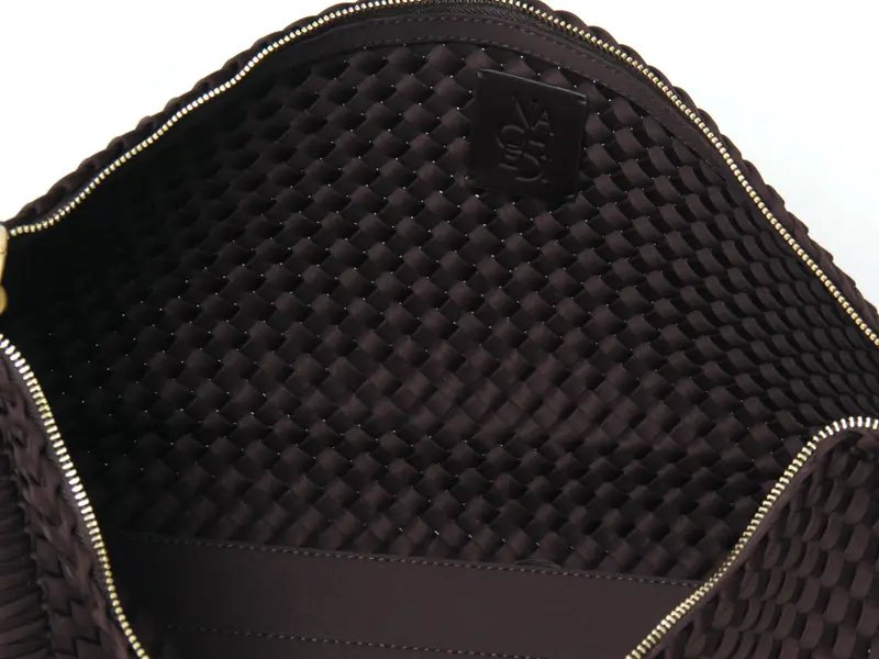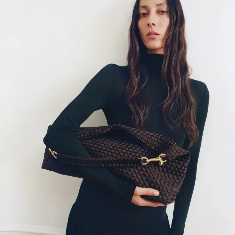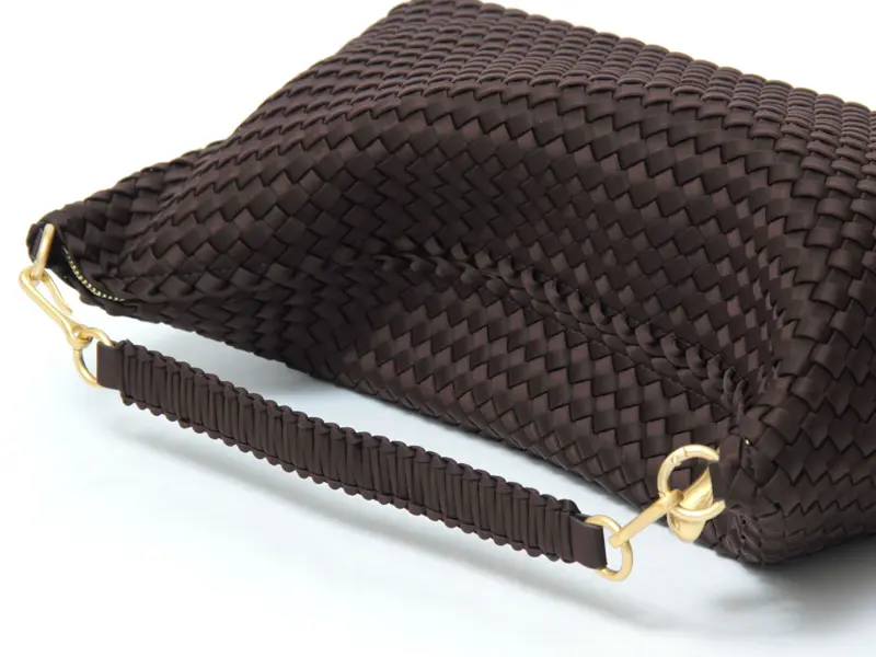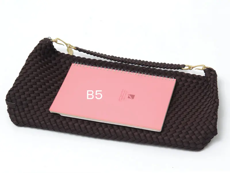 軽量で耐久性に優れた弾力のある高密度フォーム素材を採用し、女性のライフスタイルにフィットするバッグを展開するNY発ブランド "Naghedi/ナゲティ"。 ダイビングスーツなどにも用いられる高機能素材を丁寧に編み込んだ、メッシュデザインの上品なショルダーバッグです。B5サイズが横に収まる、少し余裕のあるサイズ感で、必需品+αの荷物をスマートに収納可能。肩掛けしやすいワンハンドル仕様で、通勤バッグとしてはもちろん、旅行などにも活躍します。