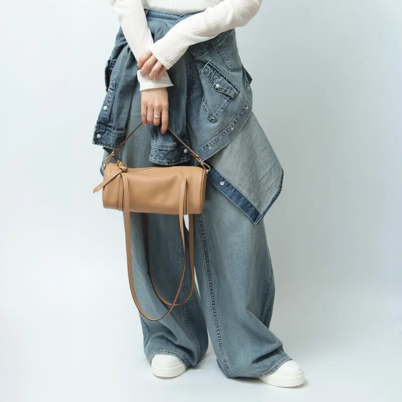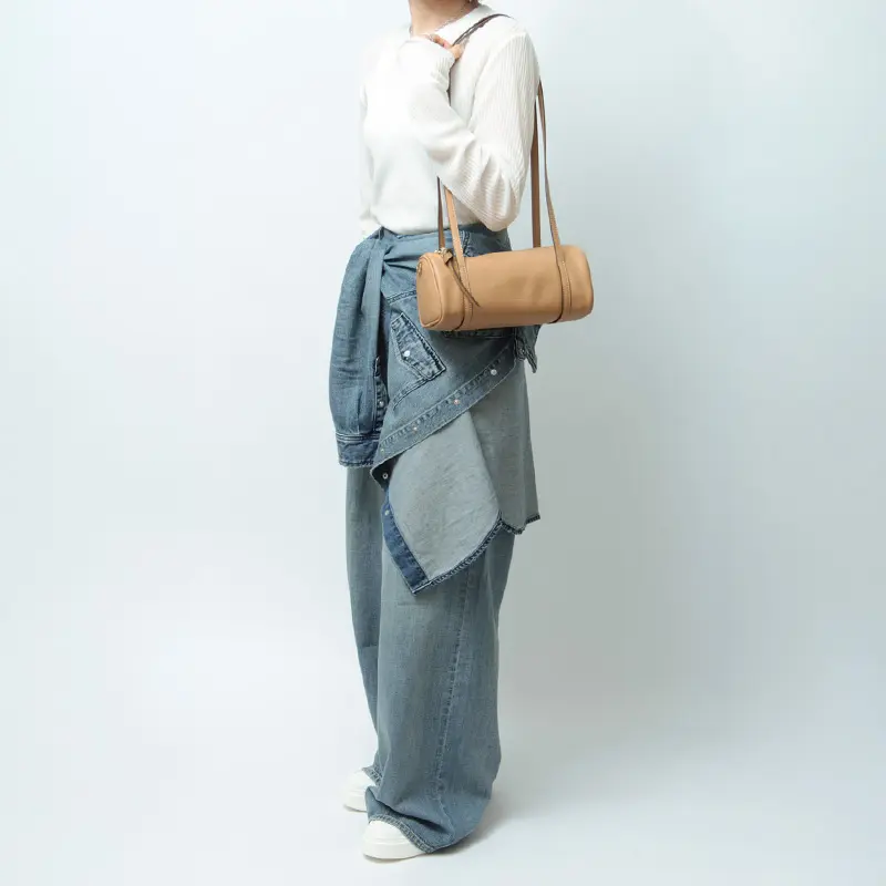長めに設計されたハンドルにより、ゆったりと肩掛けで持てるのが魅力。コンパクトなサイズ感ながら、肩に掛けたときのバランスが美しく、こなれた印象に仕上がります。そのまま肩掛けでラフに持つのはもちろん、手持ちでコンパクトにまとめるのもおすすめ。スタイリングに合わせて、さまざまな持ち方を楽しめます。