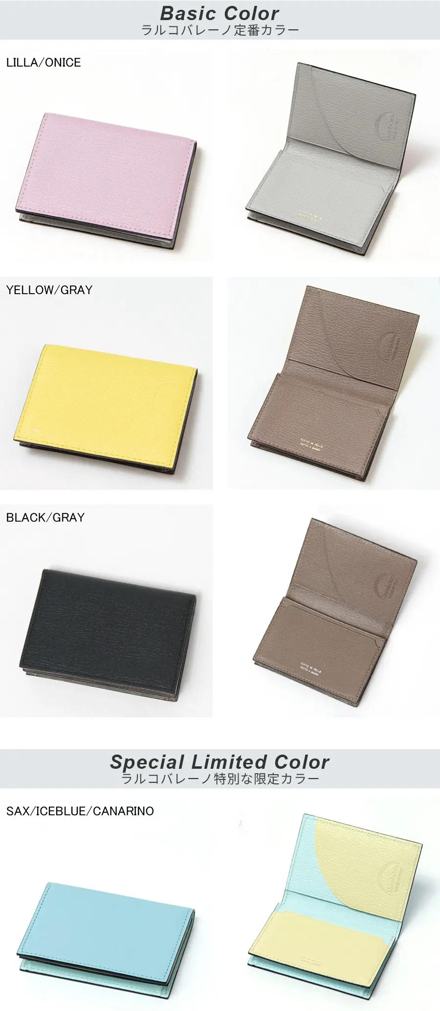L'arcobaleno ラルコバレーノ ゴートレザー カードケース SAX/ICEBLUE/CANARINO