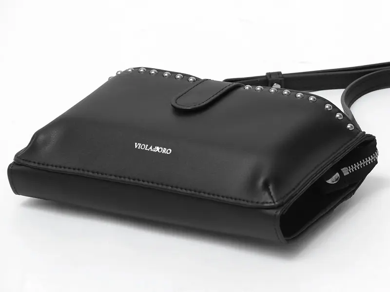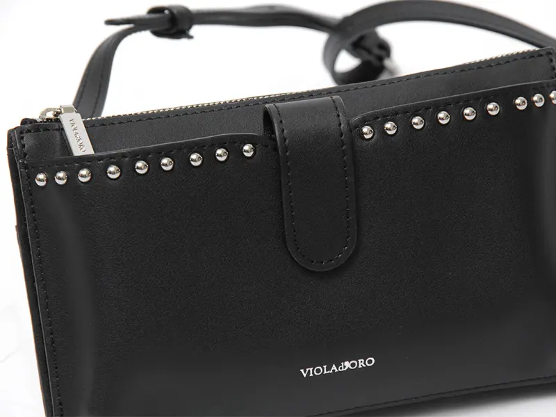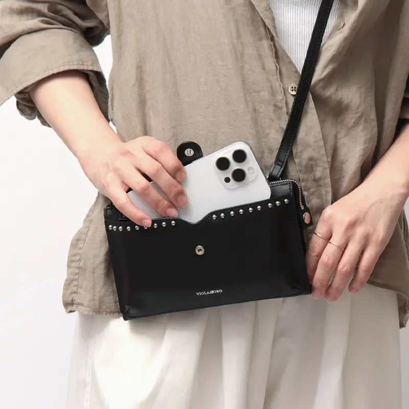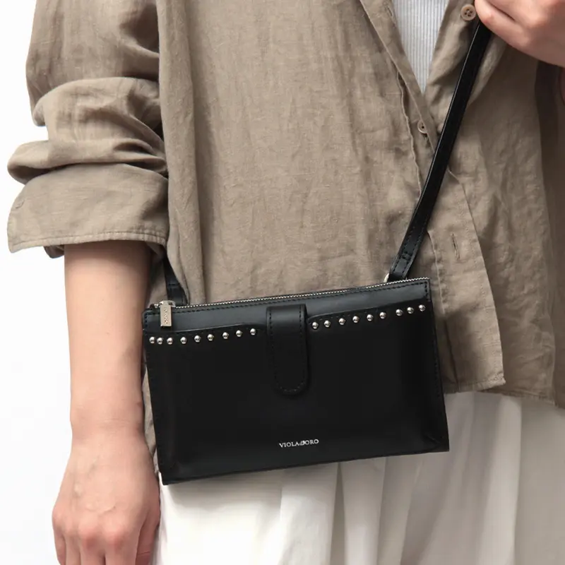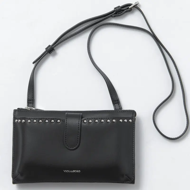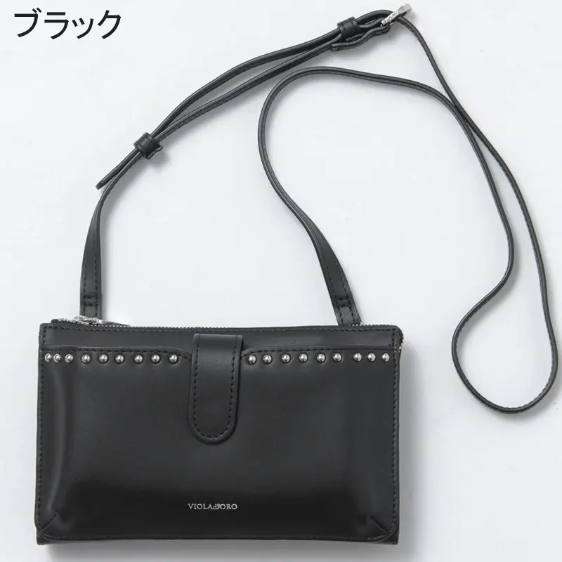VIOLAd'ORO ヴィオラドーロ MIRO 横型 スタッズ付き スマホポシェット ブラック
