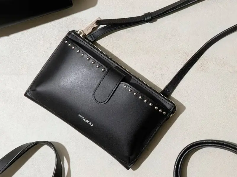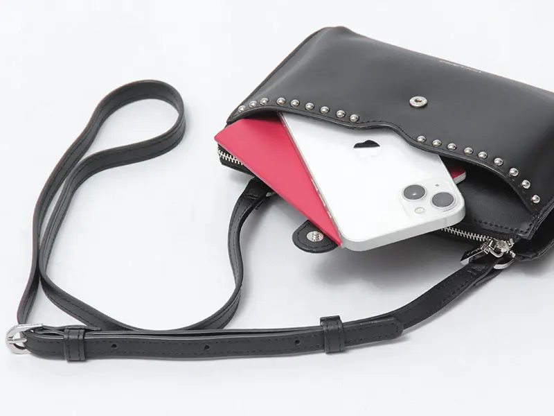 スタッズが目を惹く本革ポシェット