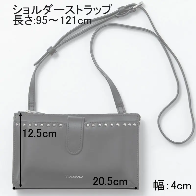 • VIOLAd'ORO ヴィオラドーロ MIRO 横型 スタッズ付き スマホポシェット