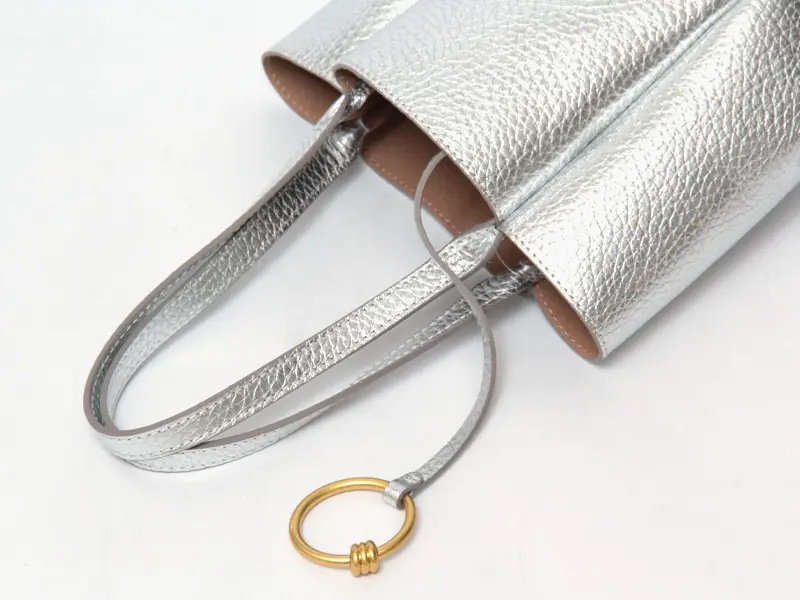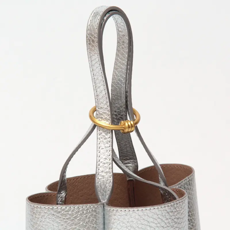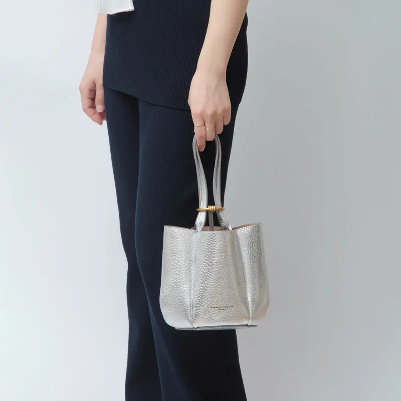 ハンドル部分にリングを通すことで、個性的で洗練されたディテールが完成するGIANNI CHIARINI(ジャンニキアリーニ)のLILY(リリー)シリーズ。上から見ると花が咲いたような立体的なシルエットとなり、装いに華やかさを添えます。リングを外せば、シンプルなトートバッグとしても使用でき、シーンやスタイリングに応じたアレンジが可能。さらに、リングの金具はブランドオリジナルで、さりげなく施されたロゴが上質感を高めます。