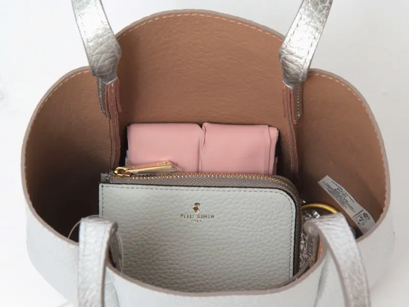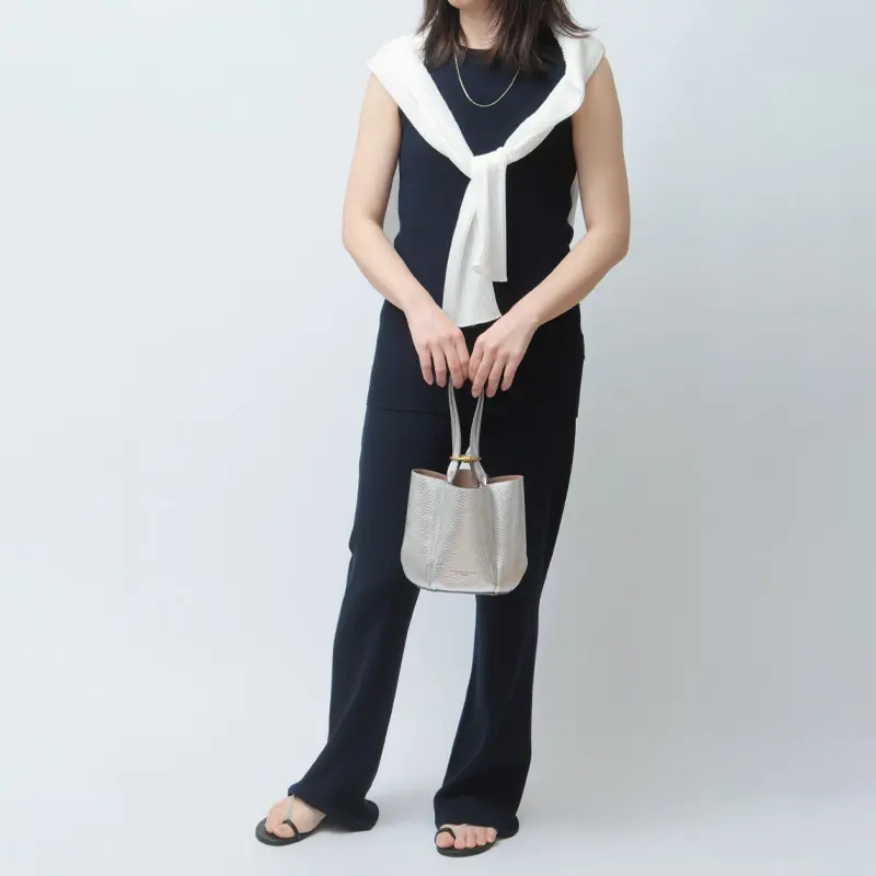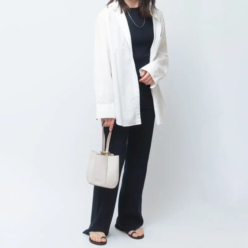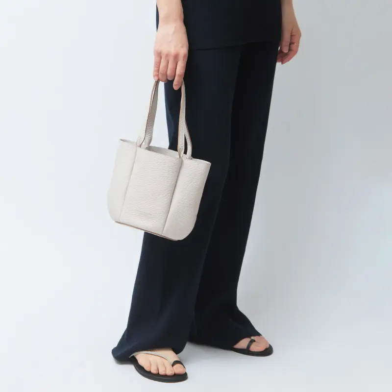 二つ折り財布やスマートフォン、エコバッグなど、外出に必要なアイテムをすっきりと収められるコンパクトなサイズ感。荷物をスマートにまとめられるため、身軽にお出かけしたいシーンに最適です。開閉部やポケットをあえて設けないミニマルな仕様が、バッグ本来の美しいフォルムを際立たせ、洗練された印象を演出。シンプルで使いやすく、デイリーからお出かけ、パーティーシーンまで幅広く活躍するデザインに仕上がっています。