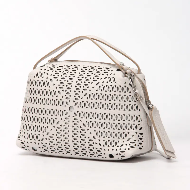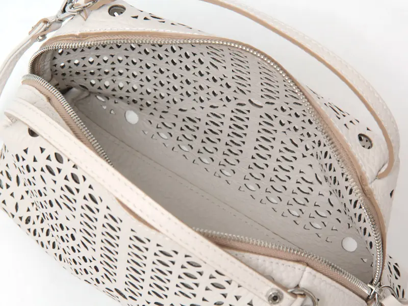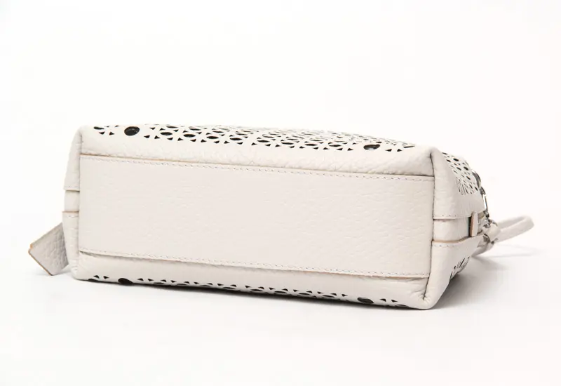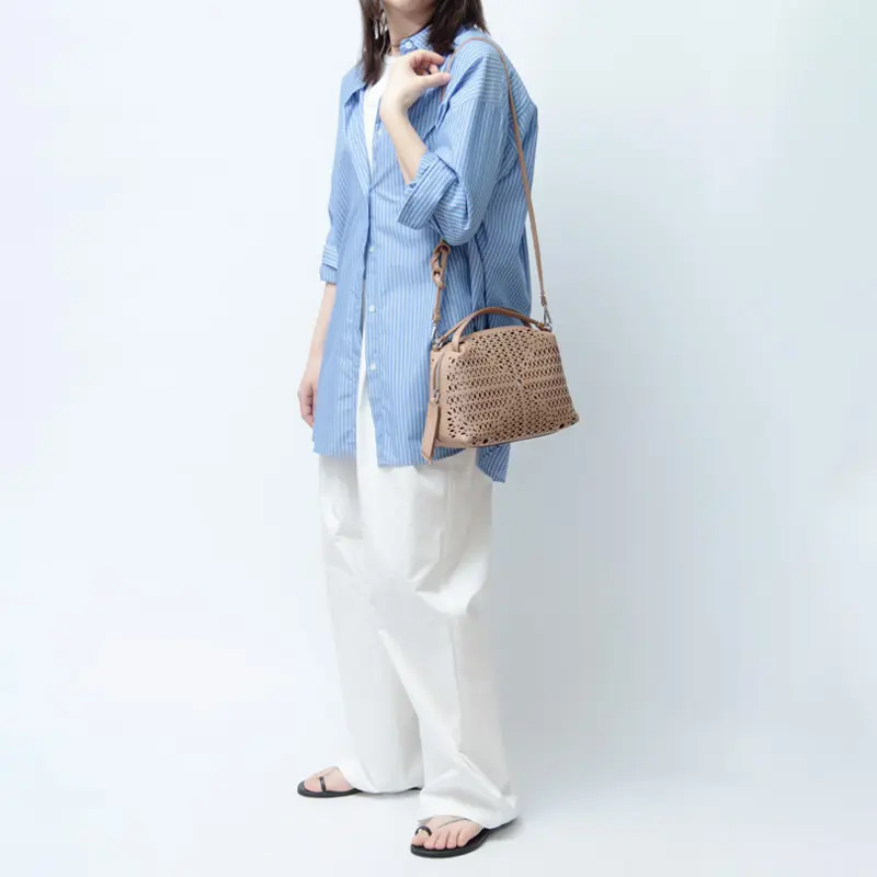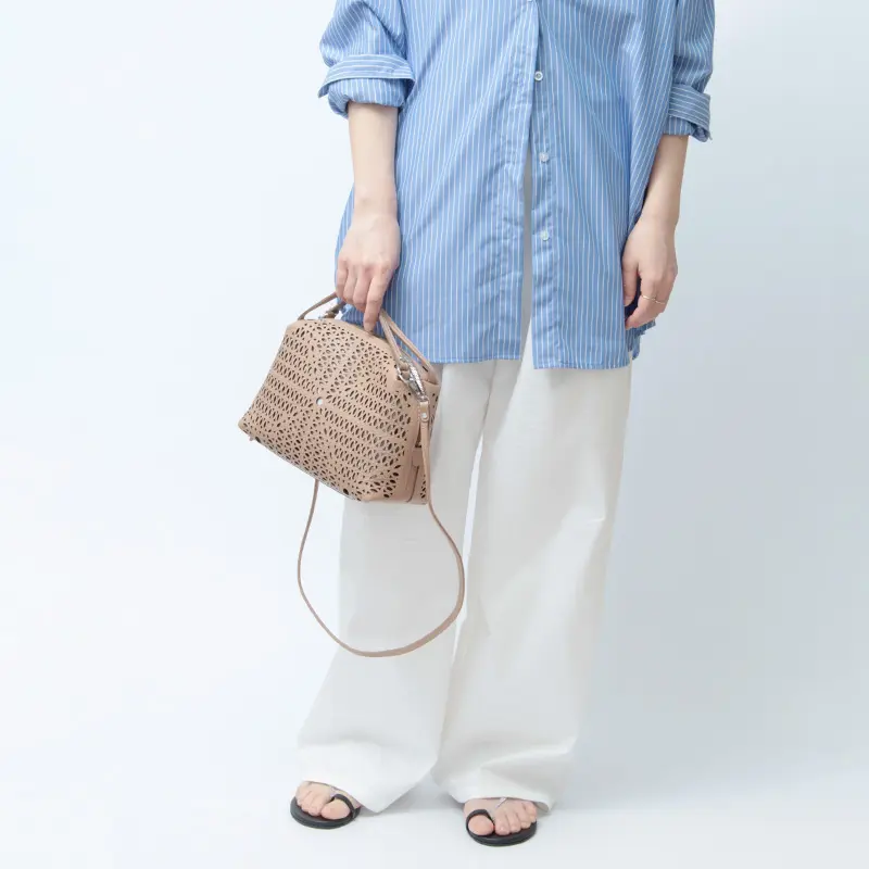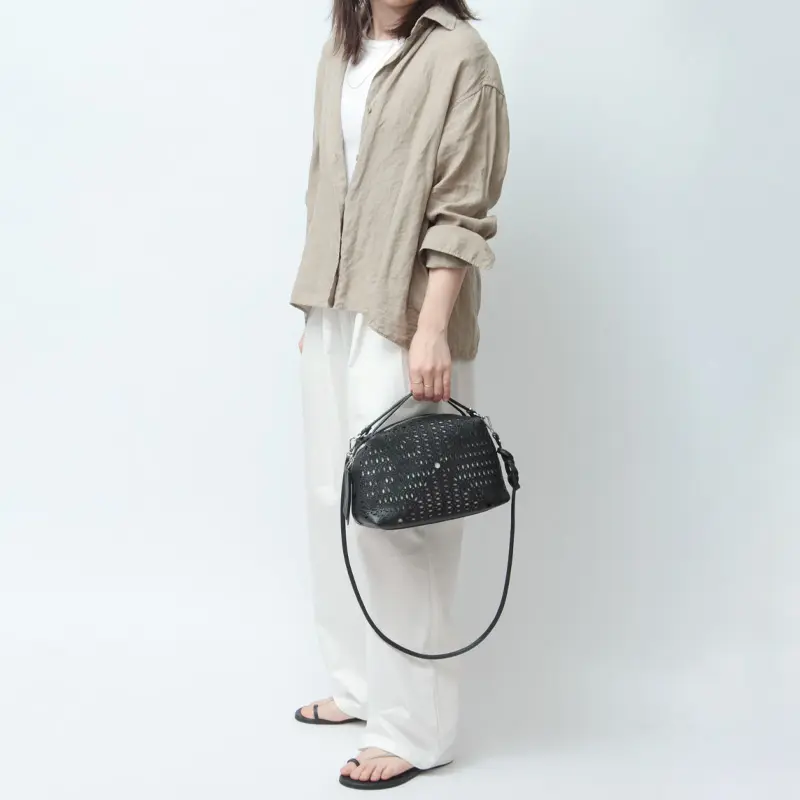 上質なレザーならではの、しなやかな質感と美しい表情が魅力。細部まで丁寧に仕上げられた素材感が、バッグ全体に洗練された印象を与えます。カットワークデザインの繊細なディテールも際立ち、軽やかさと上品さを兼ね備えた仕上がりに。使うほどに手に馴染み、風合いの変化を楽しめるのも魅力です。