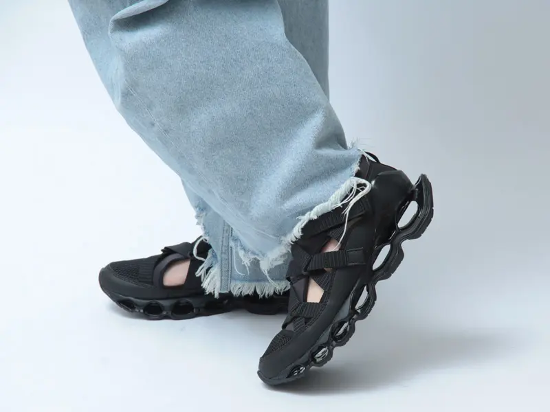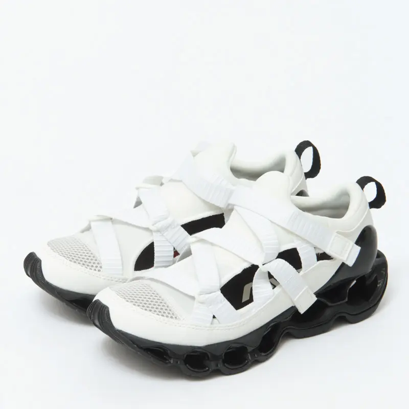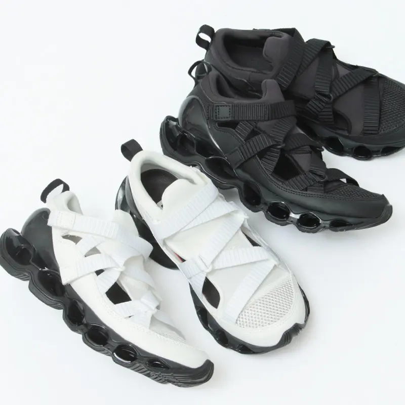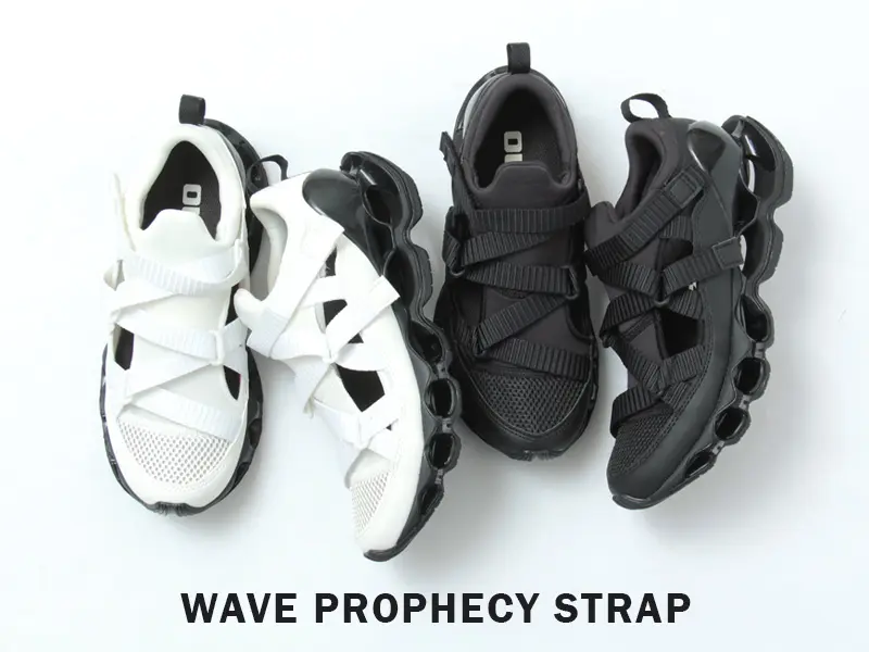 最先端の機能美をまとった、次世代のスニーカーサンダル「WAVE PROPHECY STRAP(ウェーブ プロフェシー ストラップ)」。ミズノ独自のソールテクノロジー「INFINITY WAVE(インフィニティ・ウェーブ)」を搭載し、クッション性と安定性を両立。ボリュームのあるフォルムながら、軽量で快適な履き心地を実現します。