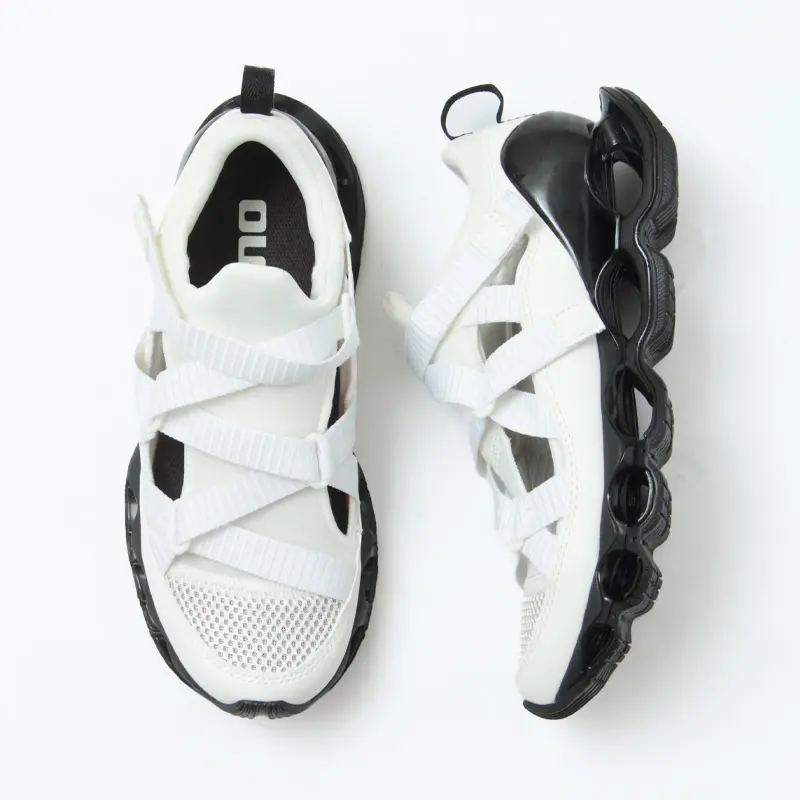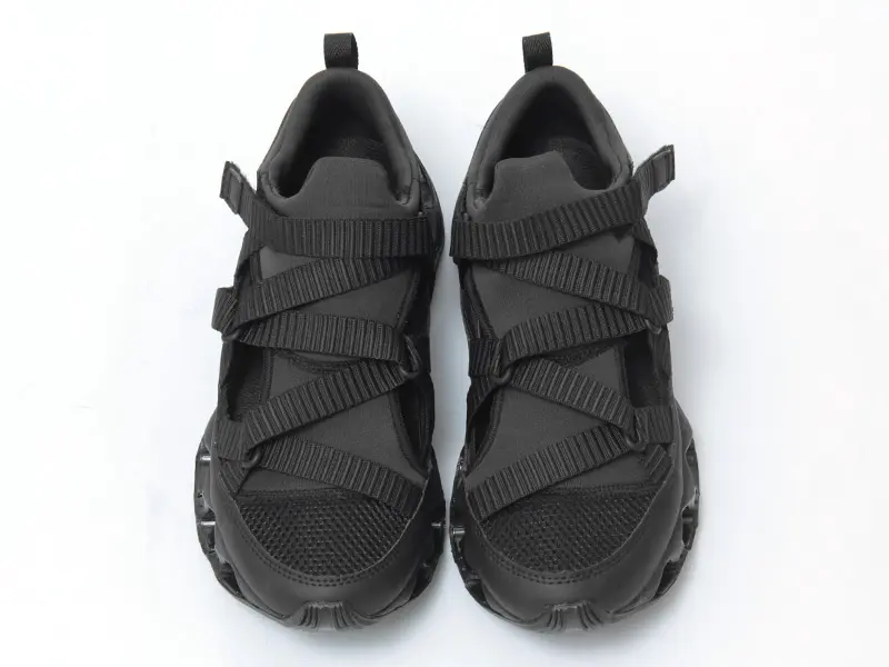 ジグザグに配置されたベルクロストラップが、ワンアクションでフィット感の調整を可能に。 立体感のあるテープデザインが足元に個性と動きを添え、スタイリングのアクセントとしても効果を発揮します。