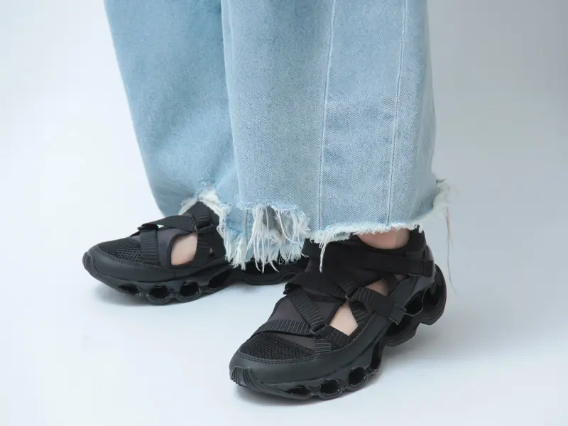 デイリーや軽度のアウトドアで活躍するスニーカーサンダル。厚めのソールが自然なスタイルアップを叶え、スポーティながらも都会的なルックスが魅力。通勤やビジネスカジュアルにもマッチし、フェミニンなスカートと合わせたスポーツMIXコーデもおすすめです。 素足でラフに抜け感を演出するのはもちろん、カラーソックスや柄ソックスでアクセントを加え、足元に遊び心をプラスしたりと、様々な足元のおしゃれを楽しめます。