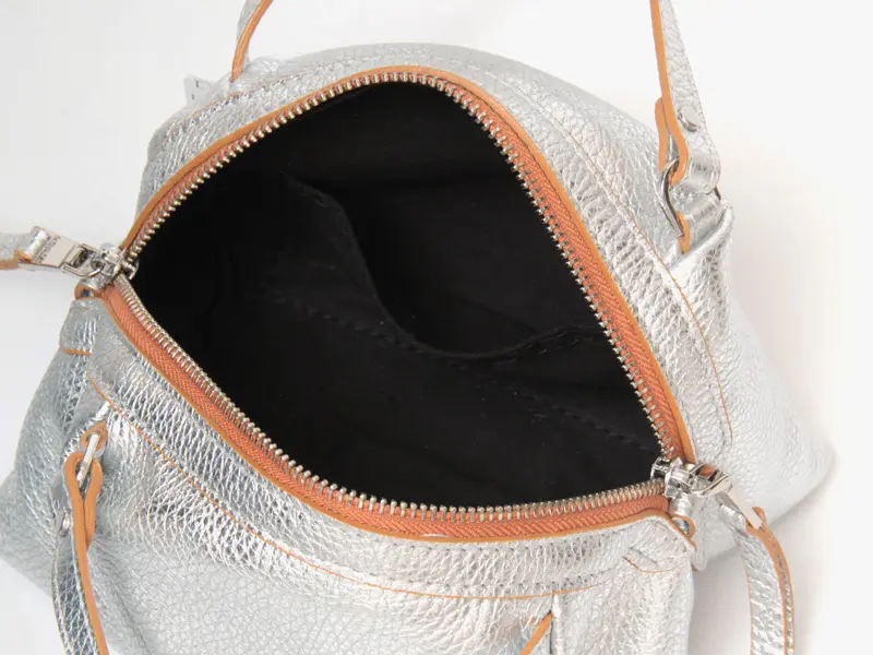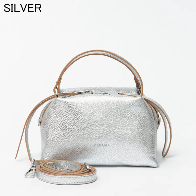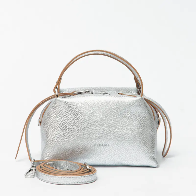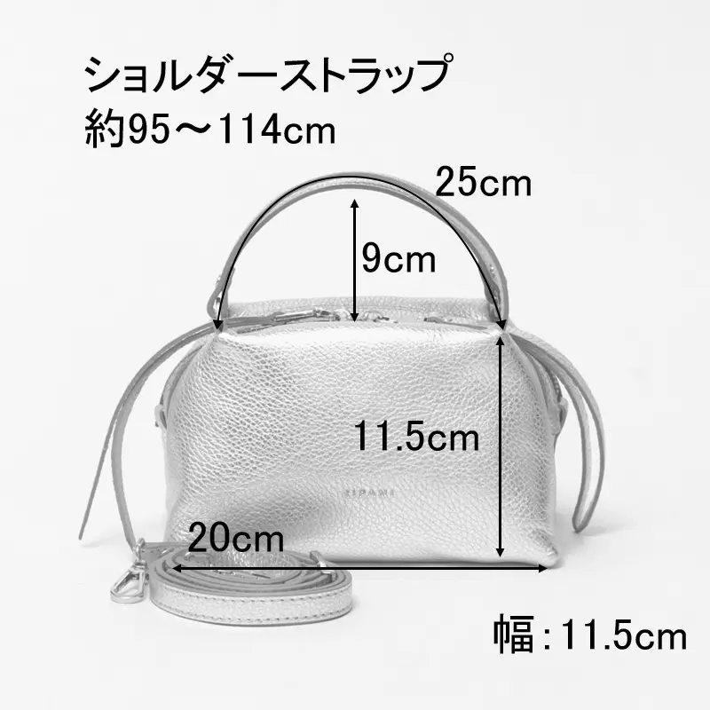 RIPANI(リパーニ)の「RONDINE(ロンディネ)」Sサイズは、コロンとしたフォルムが愛らしいシルバーのミニトートバッグ。上品な輝きがコーディネートにさりげないアクセントを添え、大人の装いを引き立てます。コンパクトな見た目ながら、マチがしっかりあることで二つ折り財布やスマートフォンなどの必需品をすっきり収納可能。付属のストラップで肩がけや斜めがけも楽しめる2way仕様で、シーンに合わせた使い分けができます。デイリーからお出かけまで幅広く活躍する、使い勝手の良いバッグです。
