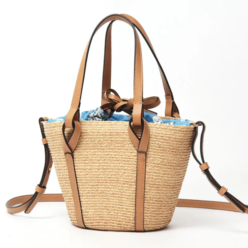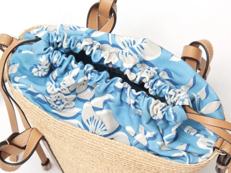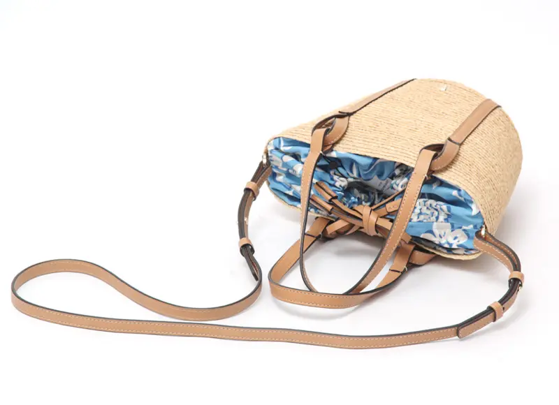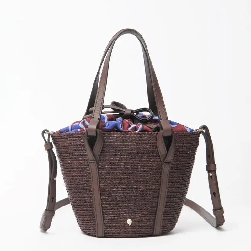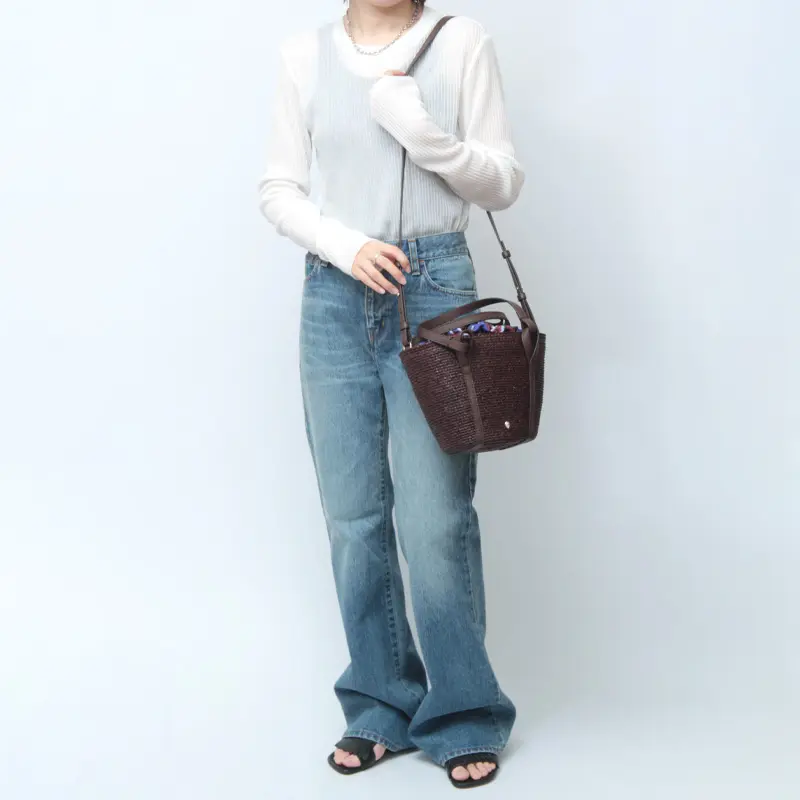 天然素材ならではの涼やかな風合いに、レザー使いがほどよい引き締め感を添えたバスケットバッグ。ハンドルやステッチまで丁寧に仕上げられ、上質さがさりげなく伝わります。ちらりと見えるプリント生地がアクセントとなり、装いに奥行きをプラス。ショルダーストラップは取り外し・長さ調節が可能な2way仕様で、リラックス感のある大人カジュアルに馴染み、旅行やお出かけなど幅広いシーンで活躍します。