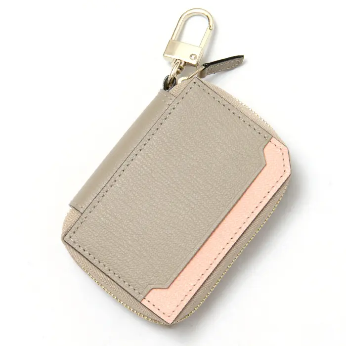 L'arcobaleno ラルコバレーノ ゴートレザー  スマートWキーケース BEIGE/PINK
