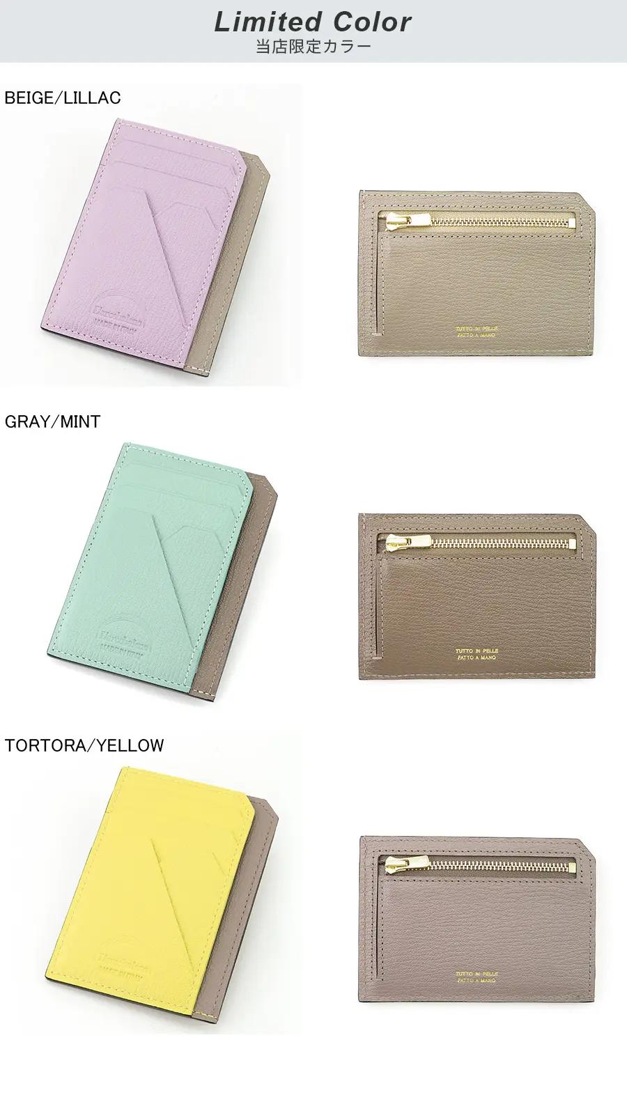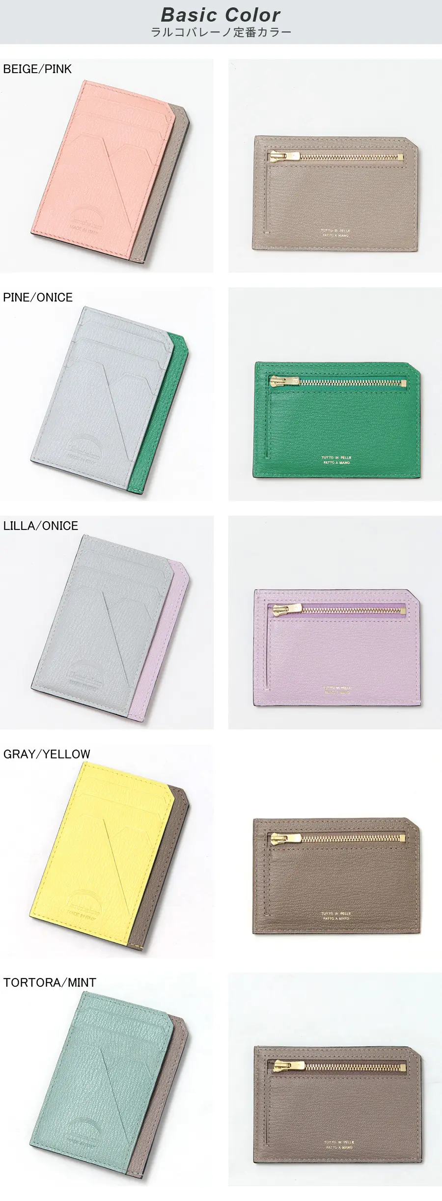 L'arcobaleno ラルコバレーノ ゴートレザー スマートミニウォレット TORTORA/MINT