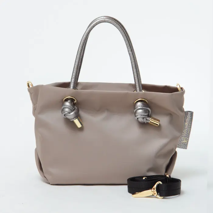 VIOLAd'ORO ヴィオラドーロ BIANCA ノットハンドル ナイロン 2wayトート (XS) V-2238 トープ/シルバー