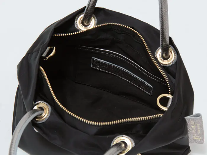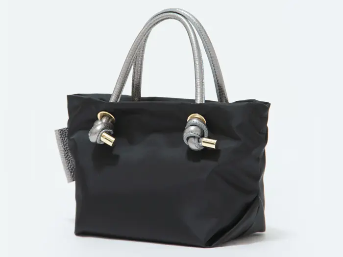 VIOLAd'ORO ヴィオラドーロ BIANCA ノットハンドル ナイロン 2wayトート (XS) V-2238 ブラック/シルバー