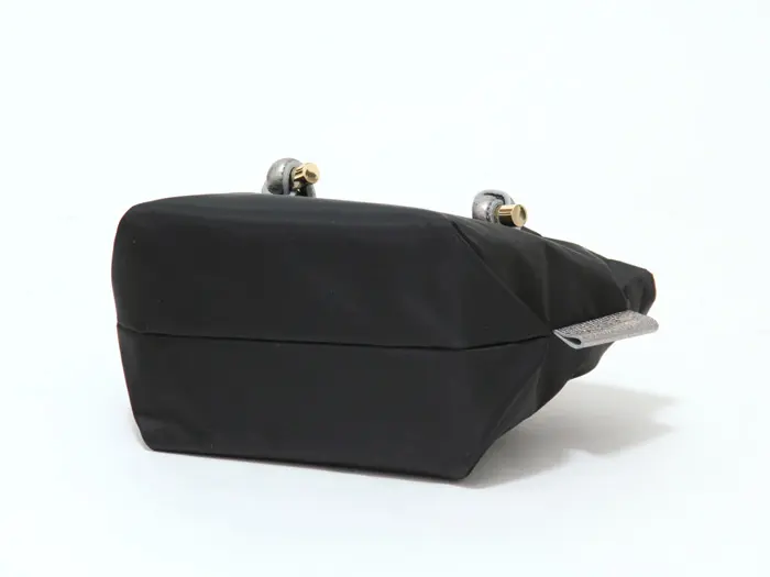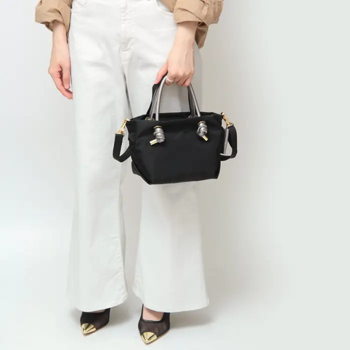 メタリックハンドルのナイロンバッグ