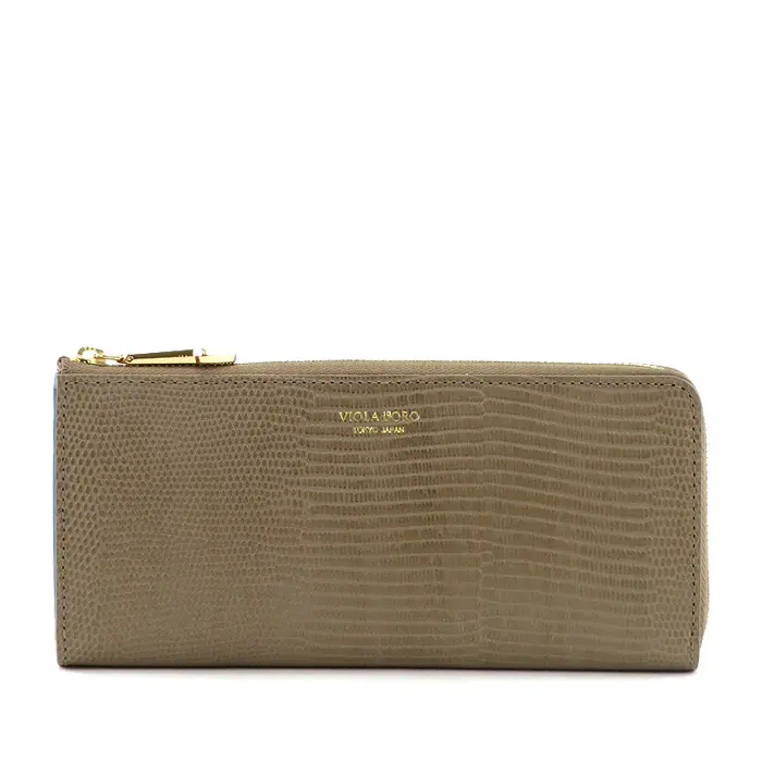 VIOLAd'ORO ヴィオラドーロ PORTA リザード型押しレザー L字ファスナー 長財布 トープ