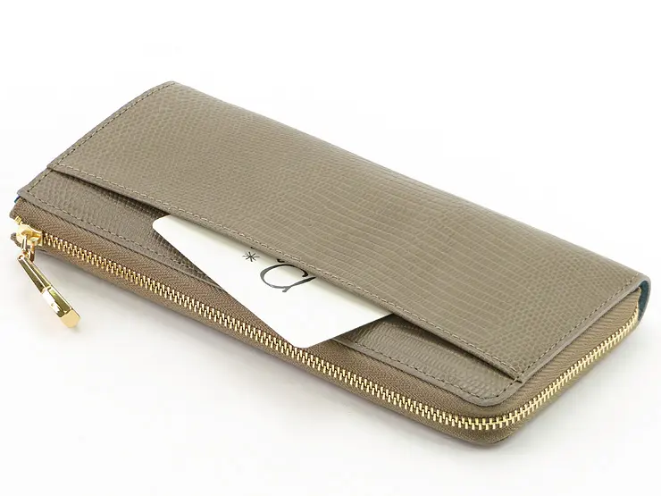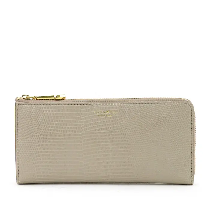 VIOLAd'ORO ヴィオラドーロ PORTA リザード型押しレザー L字ファスナー 長財布 グレージュ